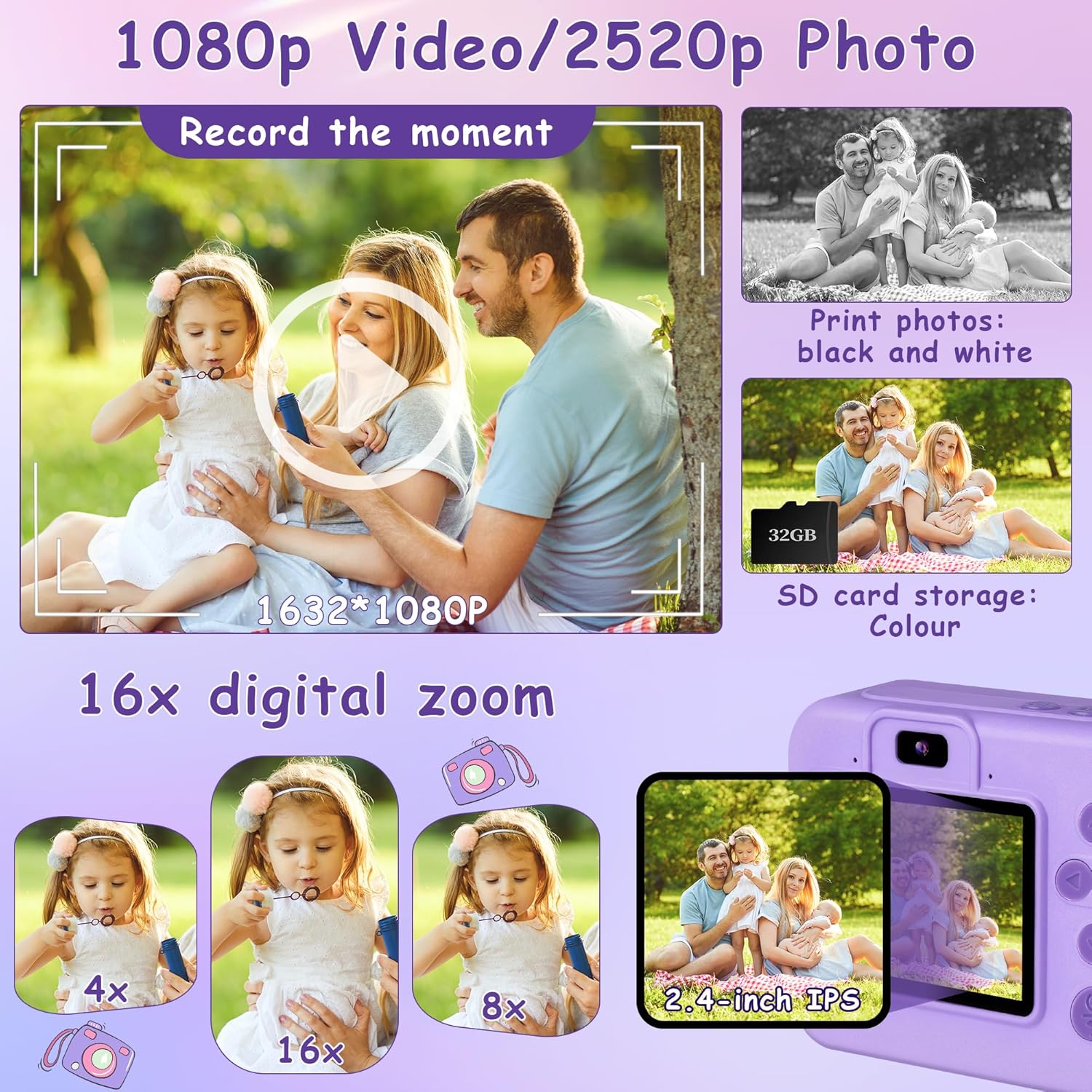 The worahroe instant camera for children is not only a camera, but a creative tool that stimulates your children's imagination. With the unique instant print function, children can print and hold their photos instantly - a great way to preserve memories and unfold the creative side. Whether at family gatherings or outdoor adventures, your children can capture their most beautiful moments in seconds and show them proudly.
