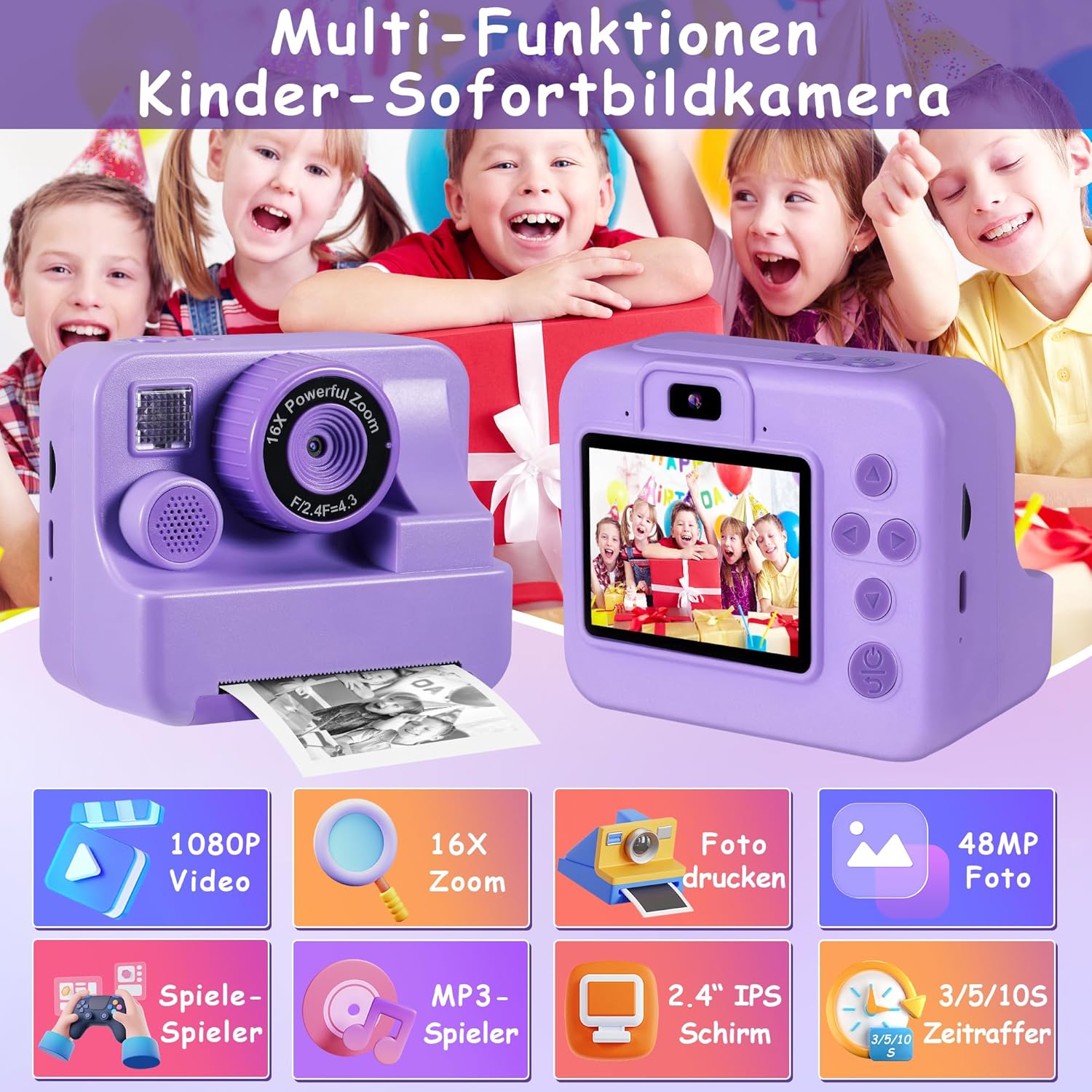 Family gatherings and festivals This instant camera is ideal for family gatherings, birthday parties and other festivities. Children can take their own photos of the events and immediately print their most beautiful moments on paper. It is not only fun, but also a wonderful memory for the future.