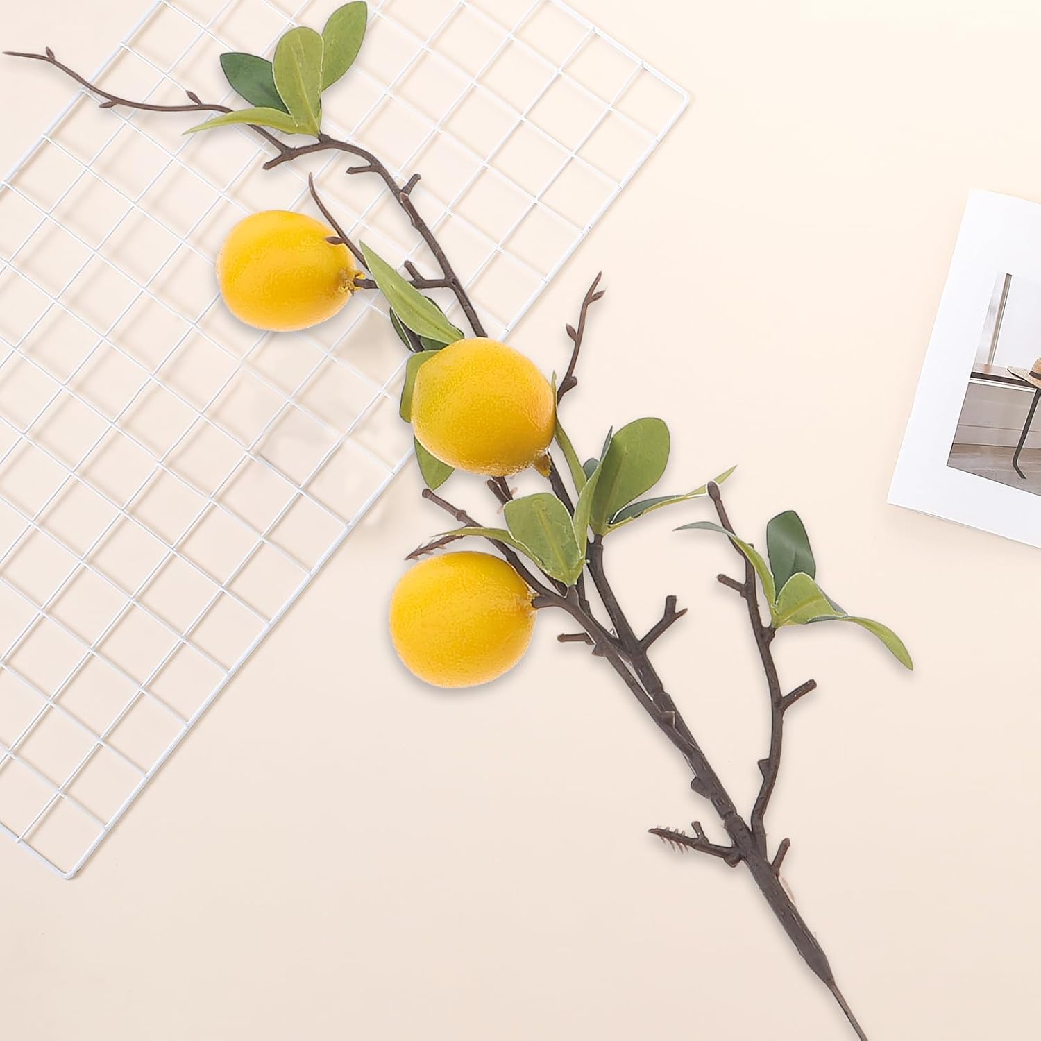 Woration 49 см Симулации Изкуствен лимонов клон Фалшив плод Жълта декорация за дома Направи си сам цветна аранжировка Фотографски реквизит Пакет от 5