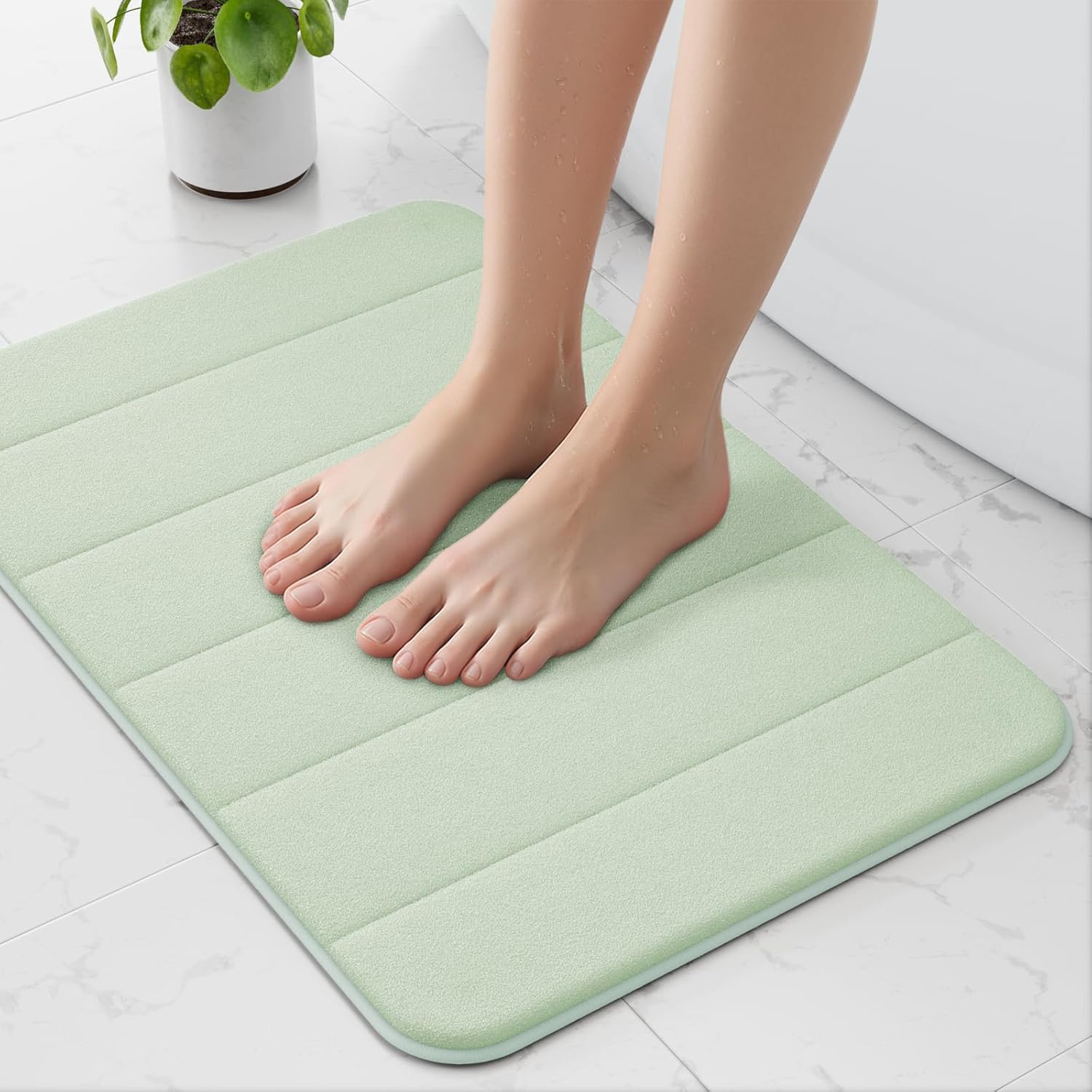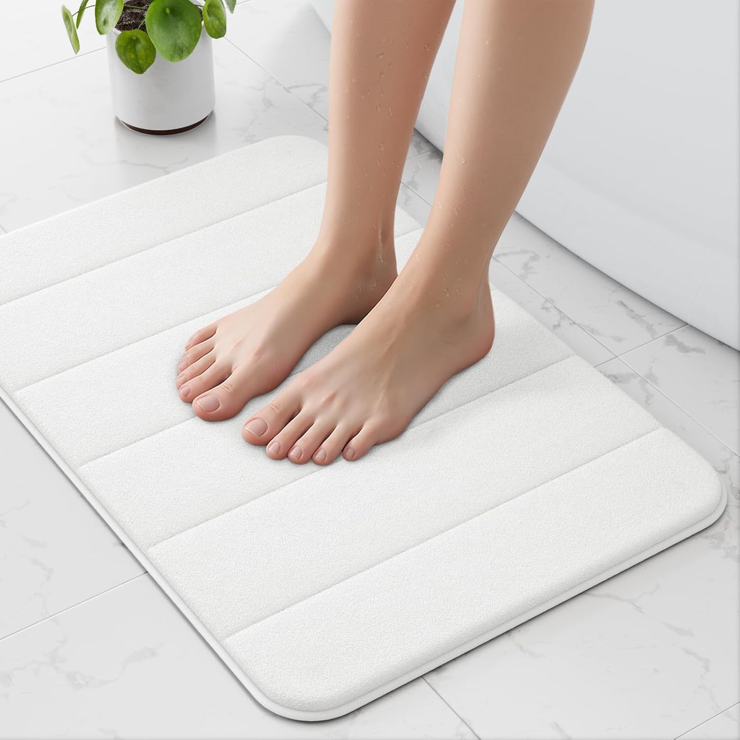 • ПЪРВОКЛАСЕН КОМФОРТ ОТ МЕМОРИ ПЯНА Изпитайте мекота, подобна на облак, с нашата сърцевина от мемори пяна с висока плътност 5/8", която се оформя по краката ви, осигурявайки изключително омекотяване и облекчаване на натиска. Технологията с бавно отскачане нежно масажира уморените стъпала и превръща банята ви в спа център след всеки душ.