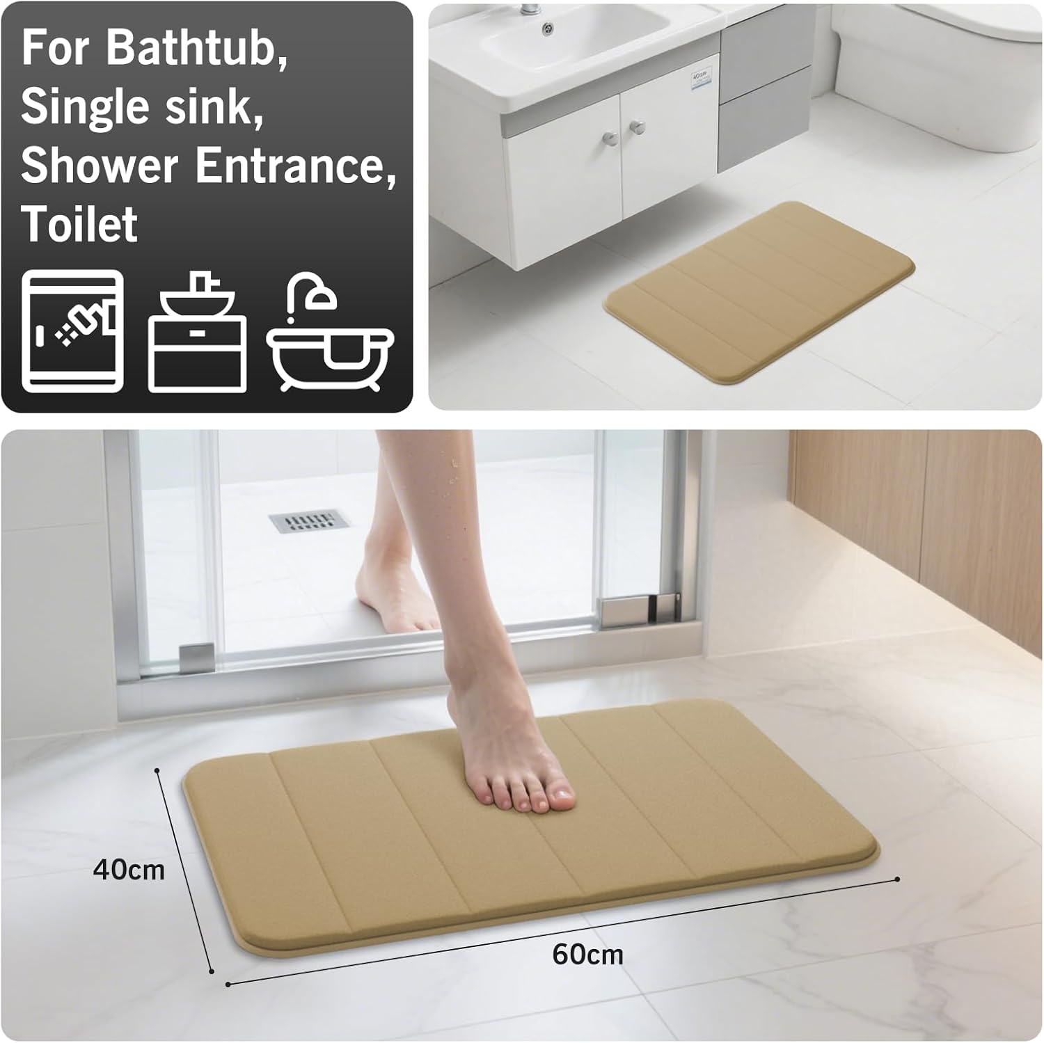wyewye Килим за баня от мемори пяна 40x60 см, бежов, ултра мек, неплъзгащ се, с технология за бързо съхнене