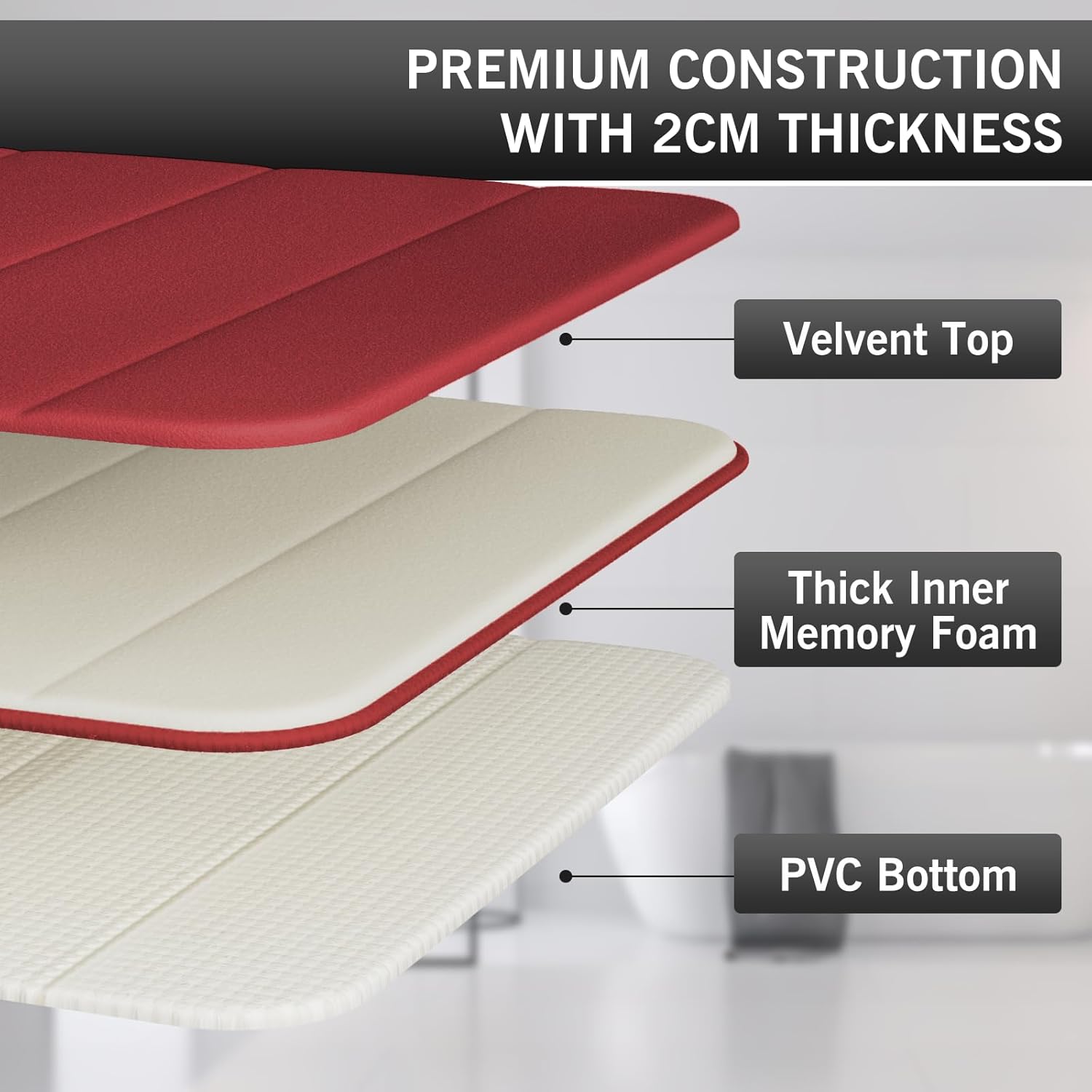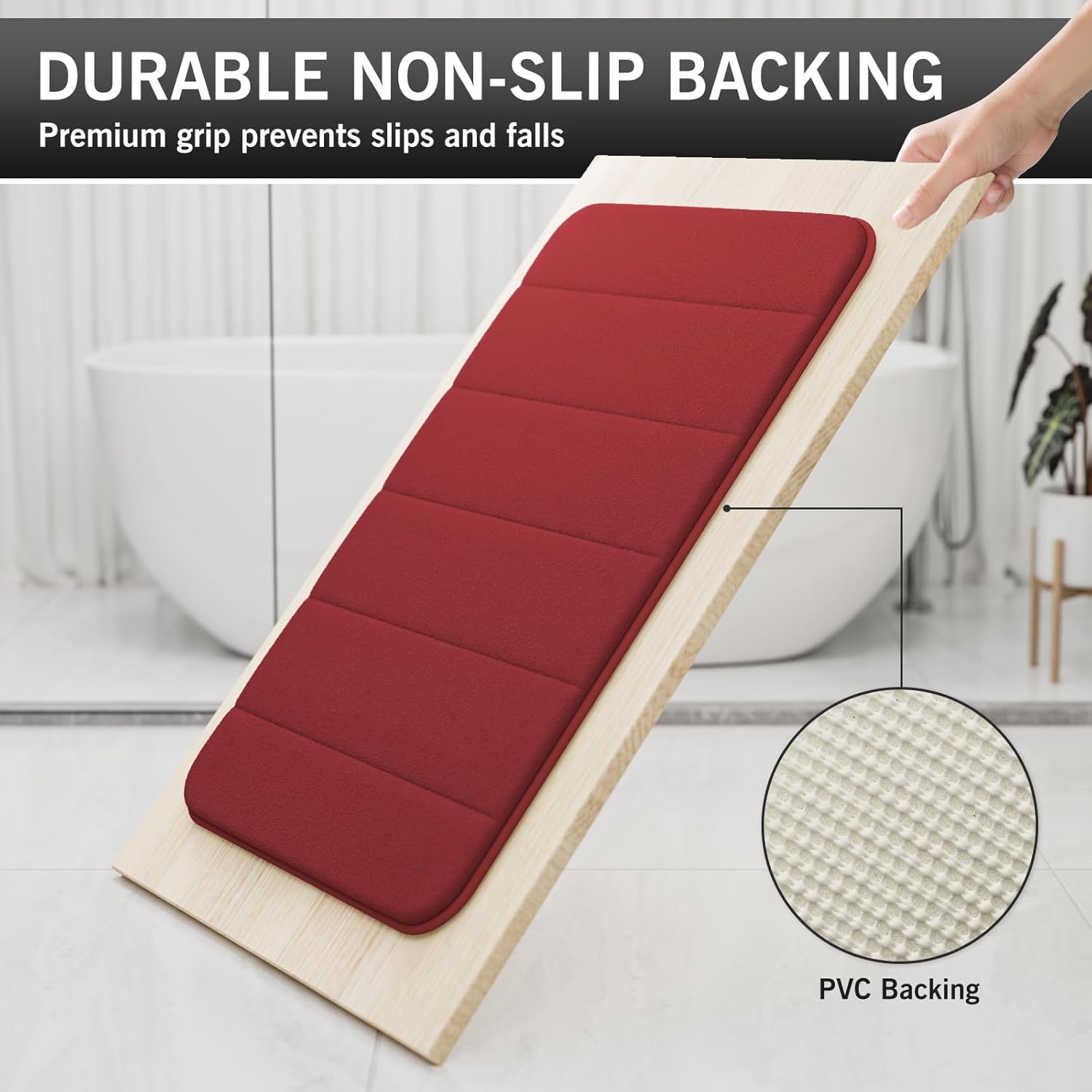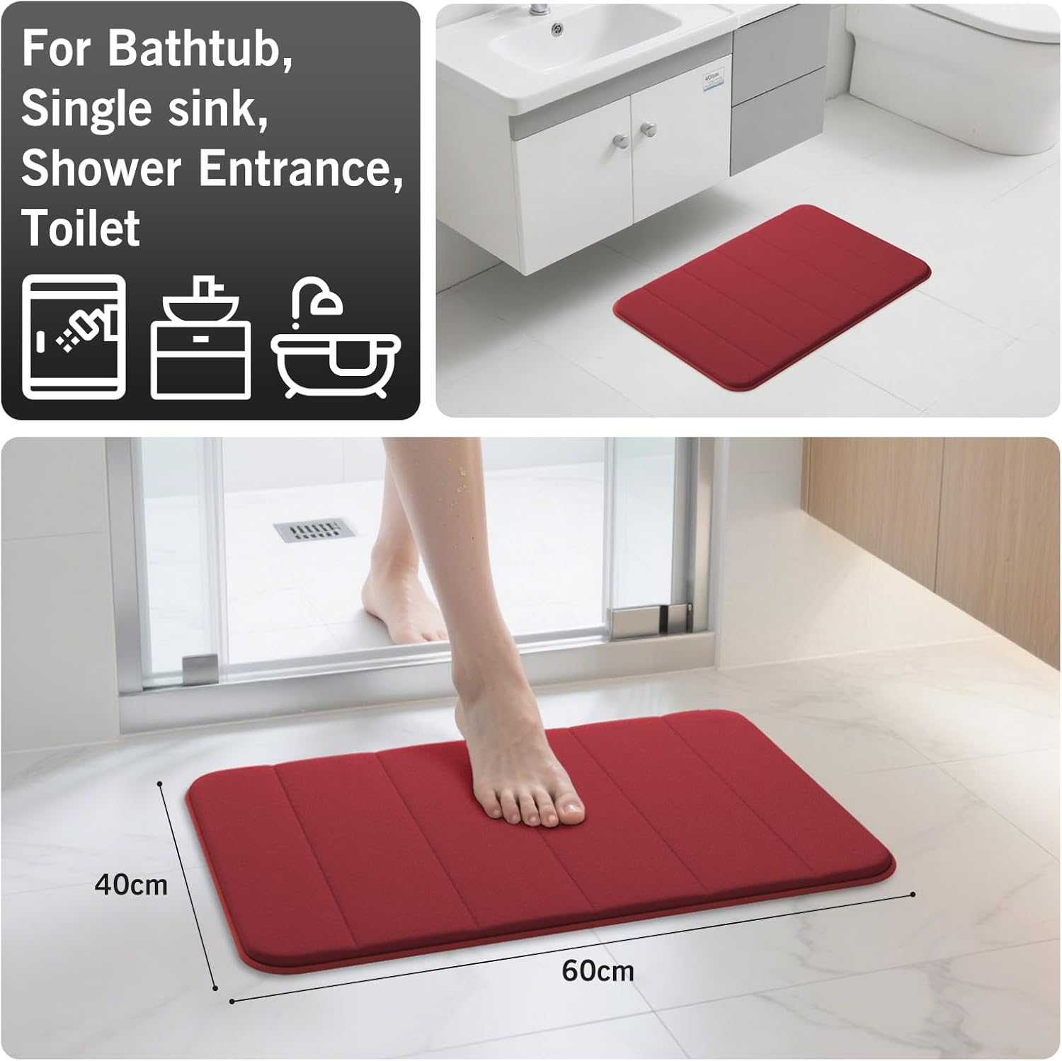wyewye Килим за баня от мемори пяна 40x60 см, червен, ултра мек, неплъзгащ се, с технология за бързо съхнене