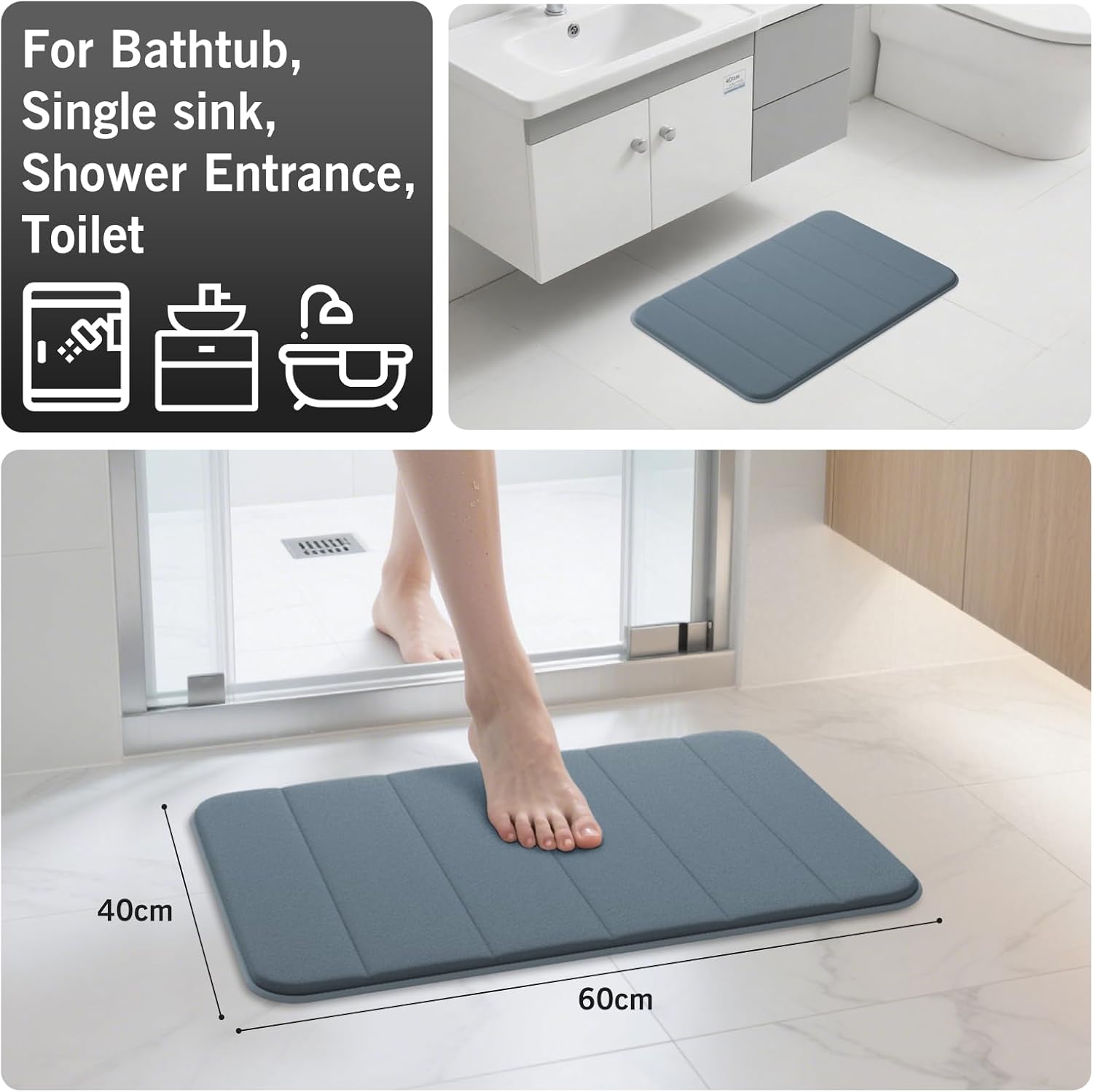 • ПЪРВОКЛАСЕН КОМФОРТ ОТ МЕМОРИ ПЯНА Изпитайте мекота, подобна на облак, с нашата сърцевина от мемори пяна с висока плътност 5/8", която се оформя по краката ви, осигурявайки изключително омекотяване и облекчаване на натиска. Технологията с бавно отскачане нежно масажира уморените стъпала и превръща банята ви в спа център след всеки душ.
