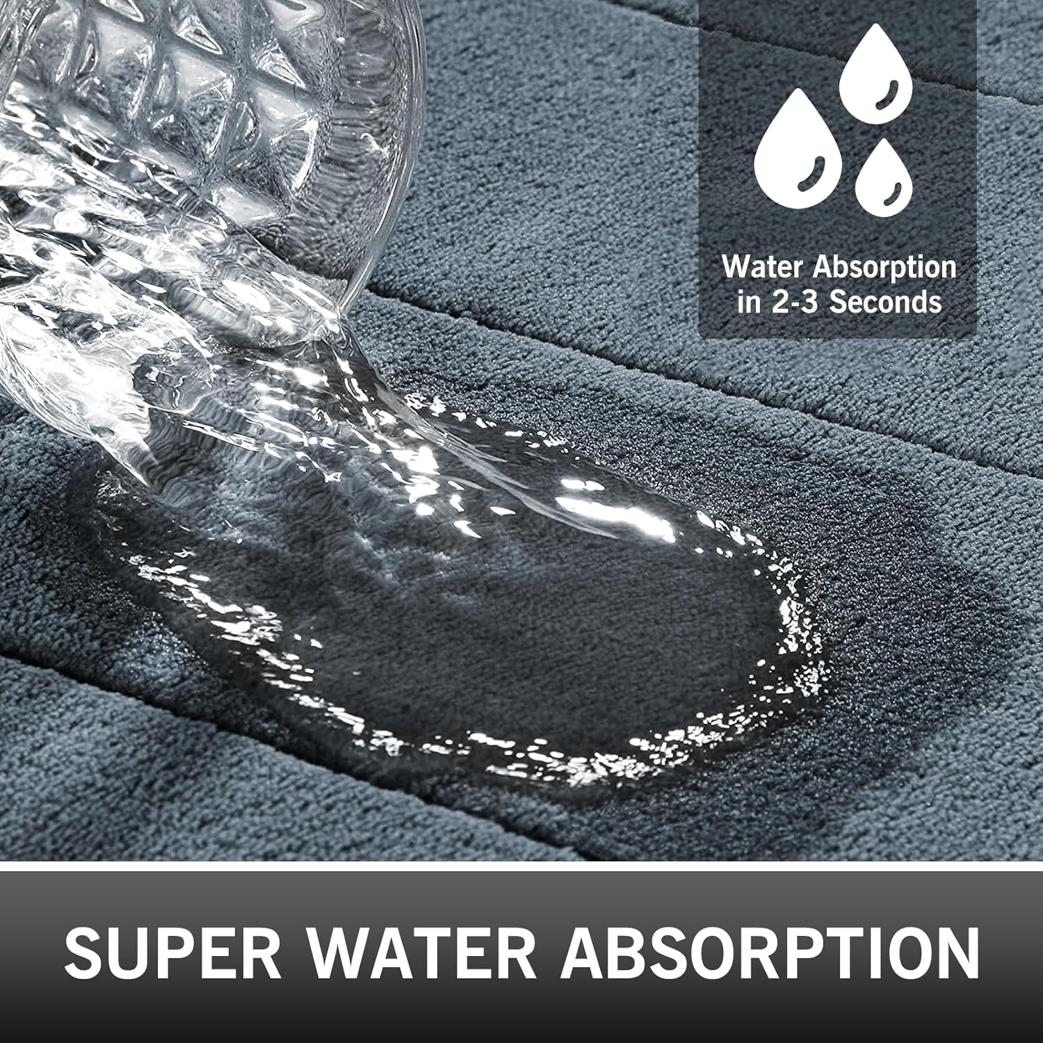 • Светкавично бързо попиване на вода. Проектирана с ултраабсорбираща повърхност от полиестерен микрофибър, тази постелка за баня незабавно отвежда водните капки и поддържа краката ви сухи и топли, след като излезете от ваната или душа. Кажете сбогом на влажните подове.