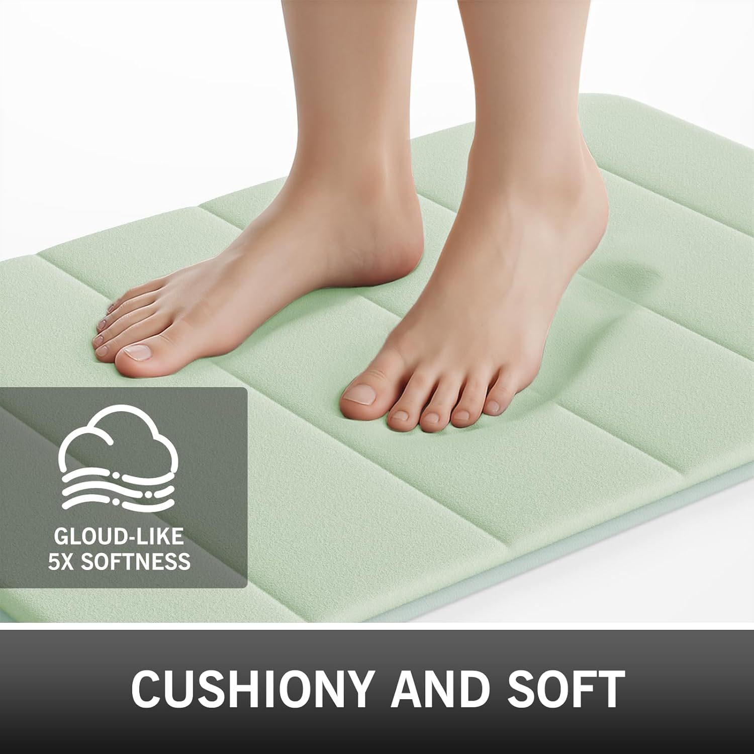 • ПЪРВОКЛАСЕН КОМФОРТ ОТ МЕМОРИ ПЯНА Изпитайте мекота, подобна на облак, с нашата сърцевина от мемори пяна с висока плътност 5/8", която се оформя по краката ви, осигурявайки изключително омекотяване и облекчаване на натиска. Технологията с бавно отскачане нежно масажира уморените стъпала и превръща банята ви в спа център след всеки душ.