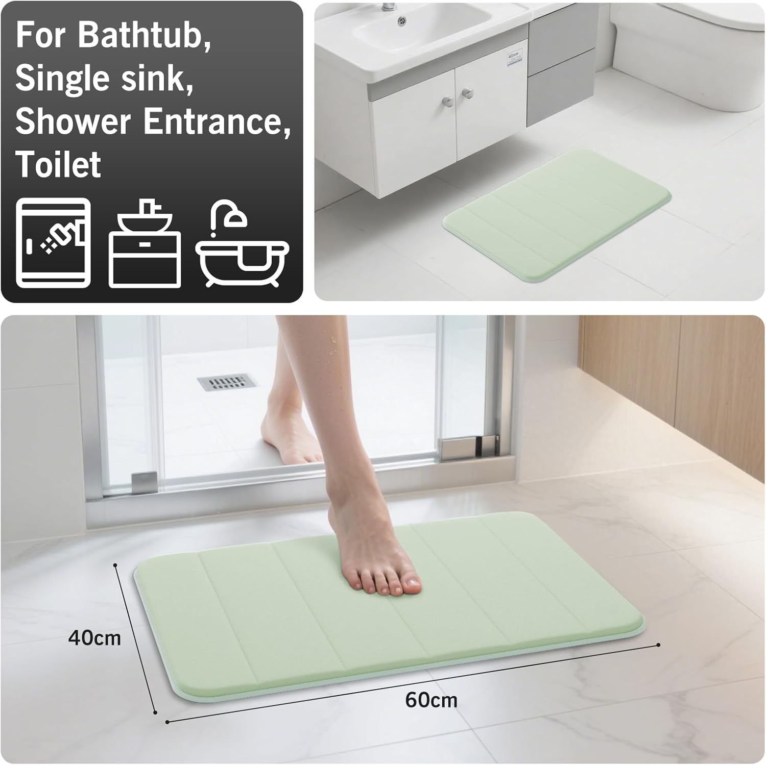 wyewye Килим за баня от мемори пяна 40x60 см светло зелено - Ултра мек неплъзгащ се килим за баня с бързосъхнеща технология