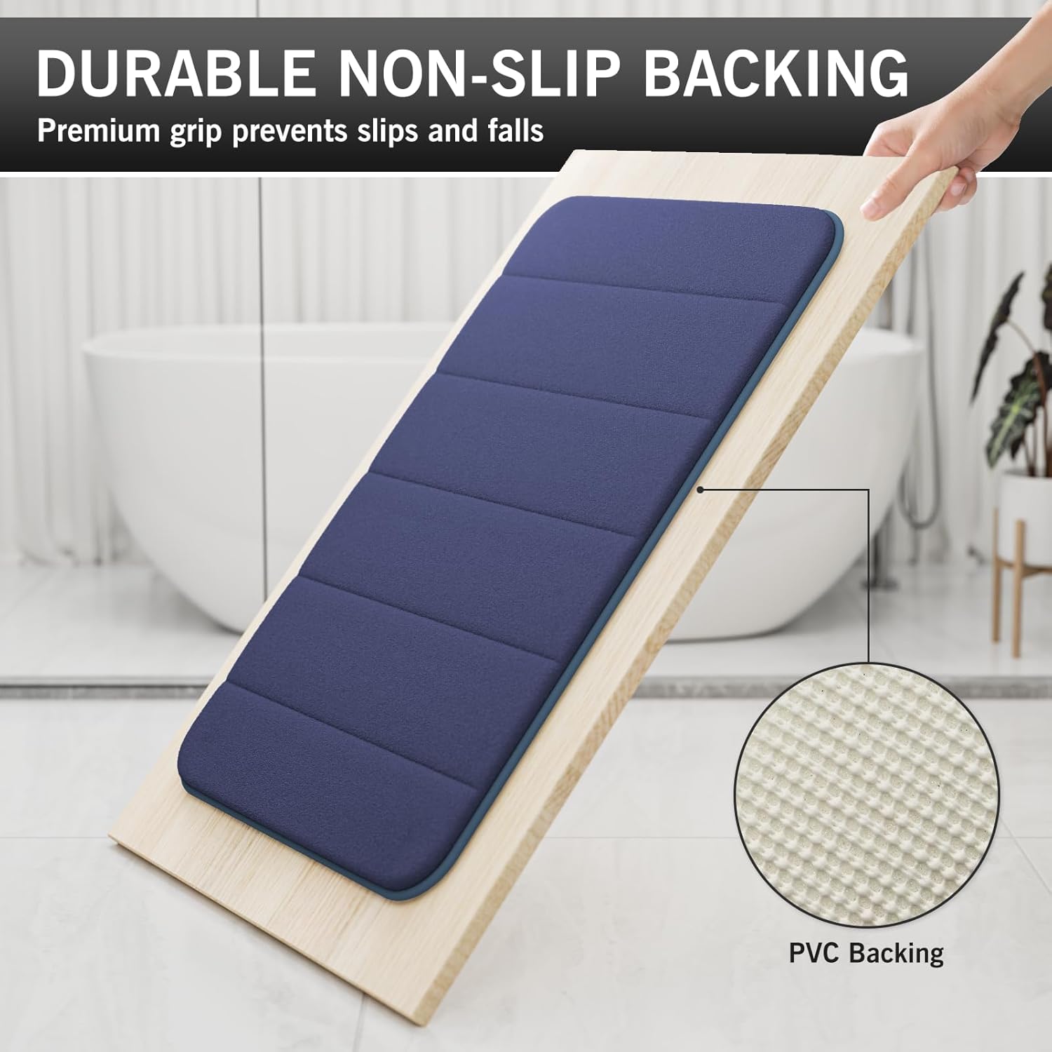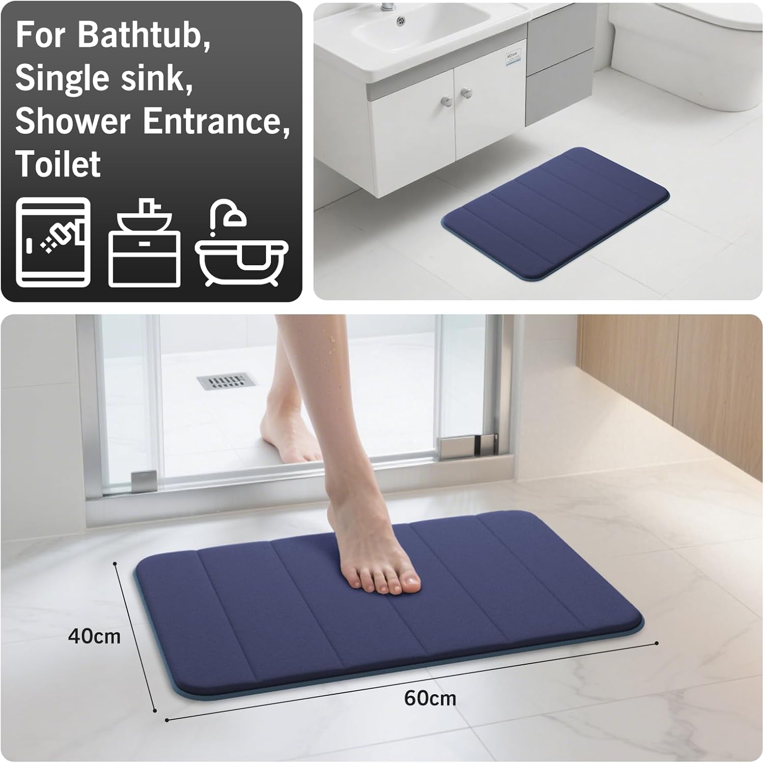 wyewye Килим за баня от мемори пяна 40x60 см, тъмносиньо, ултра мек, неплъзгащ се, с технология за бързо съхнене