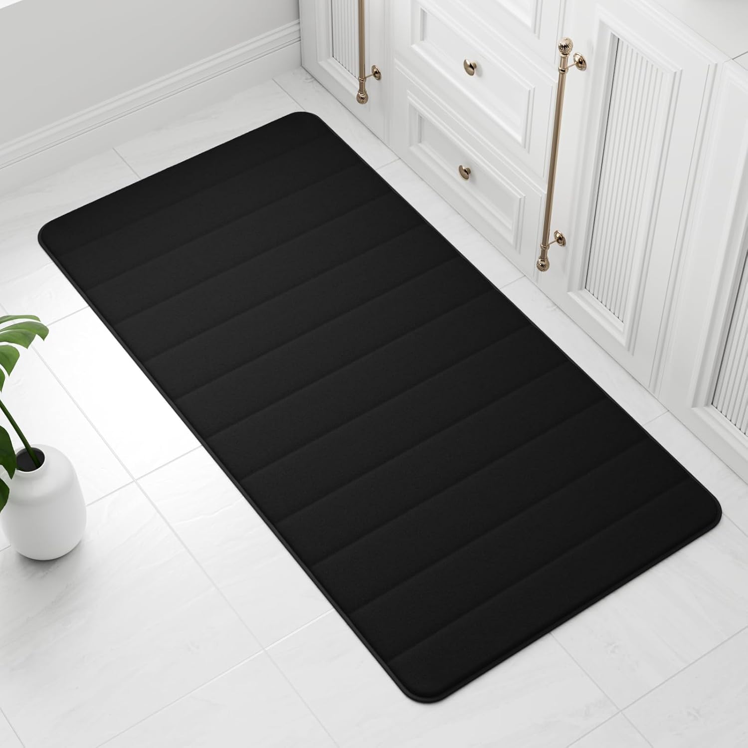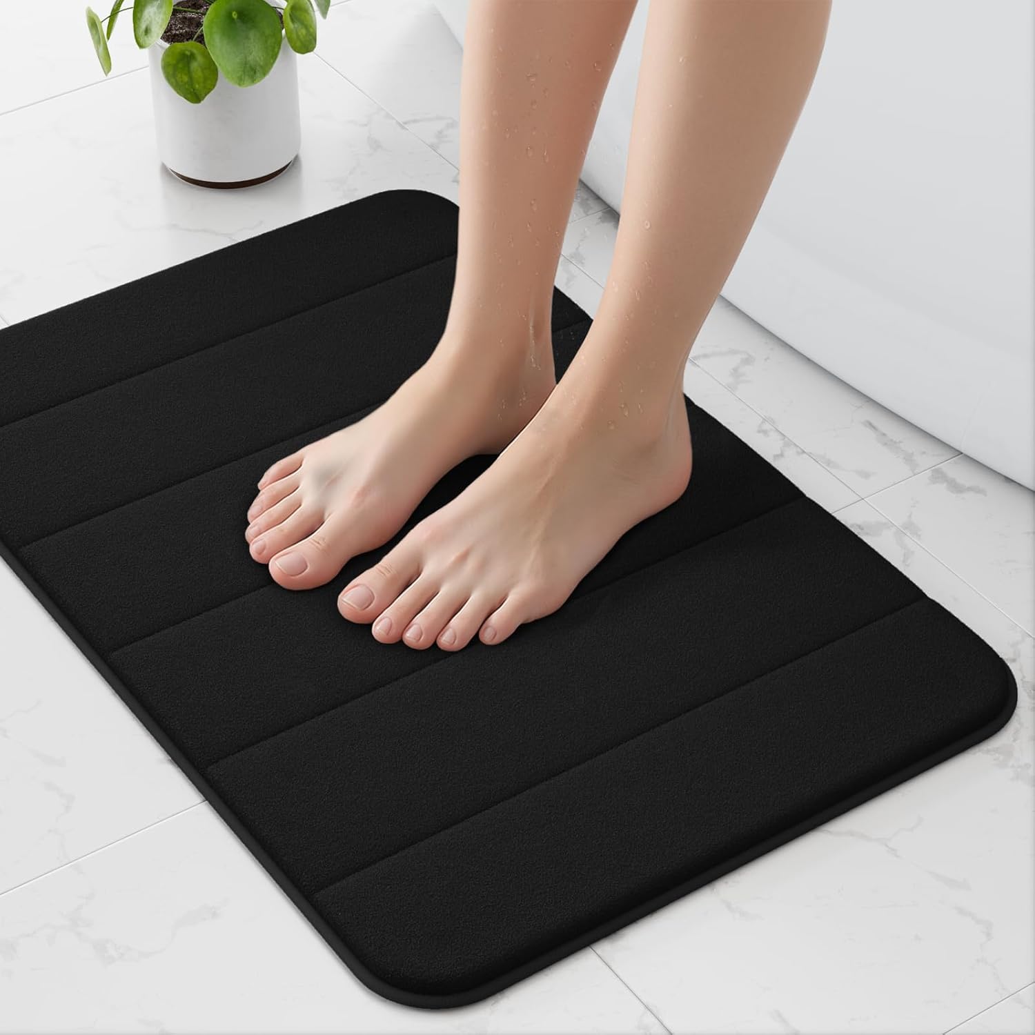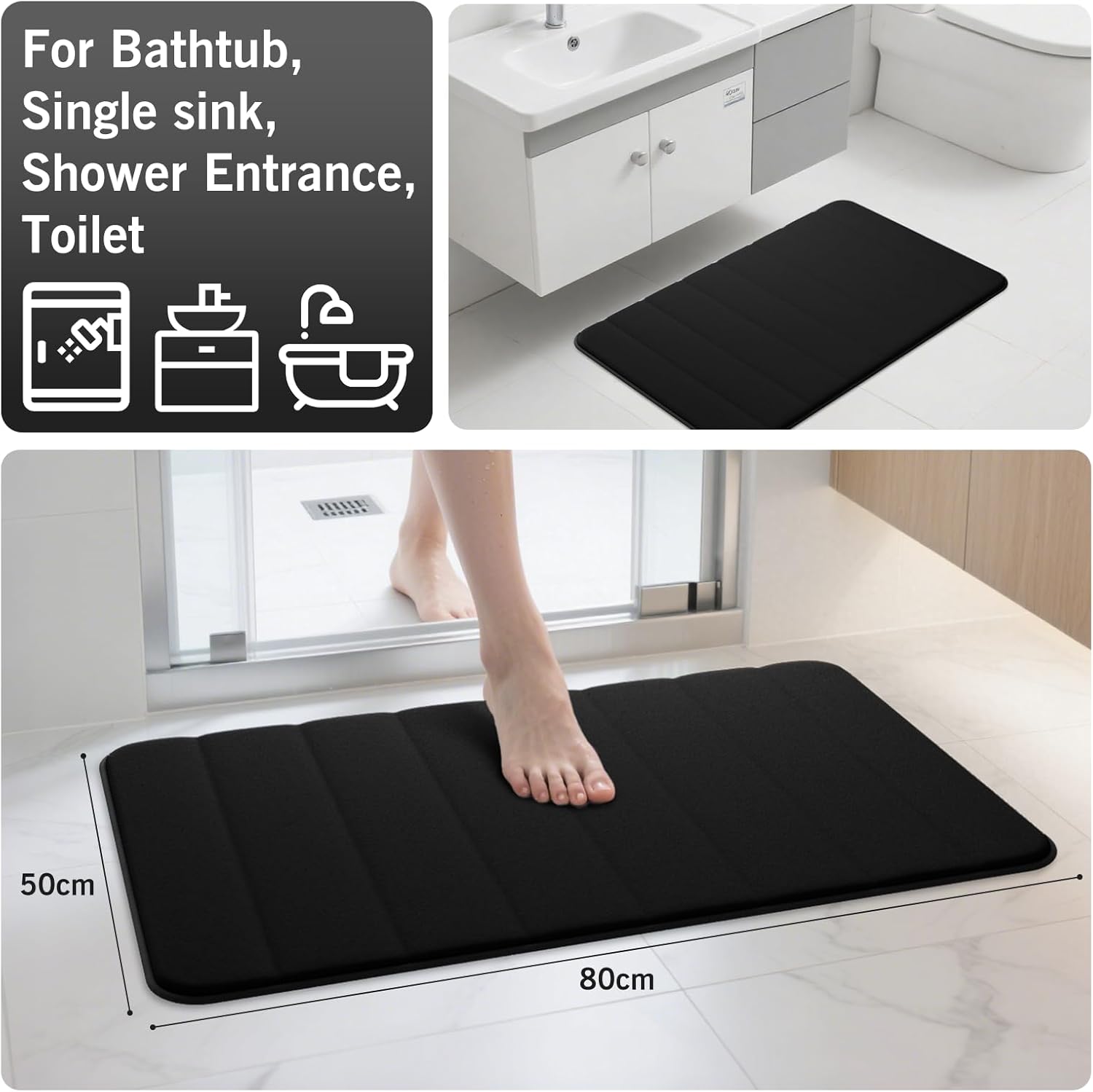 wyewye Килим за баня от мемори пяна 50 x 80 см, черен, ултра мек, неплъзгащ се, с технология за бързо съхнене