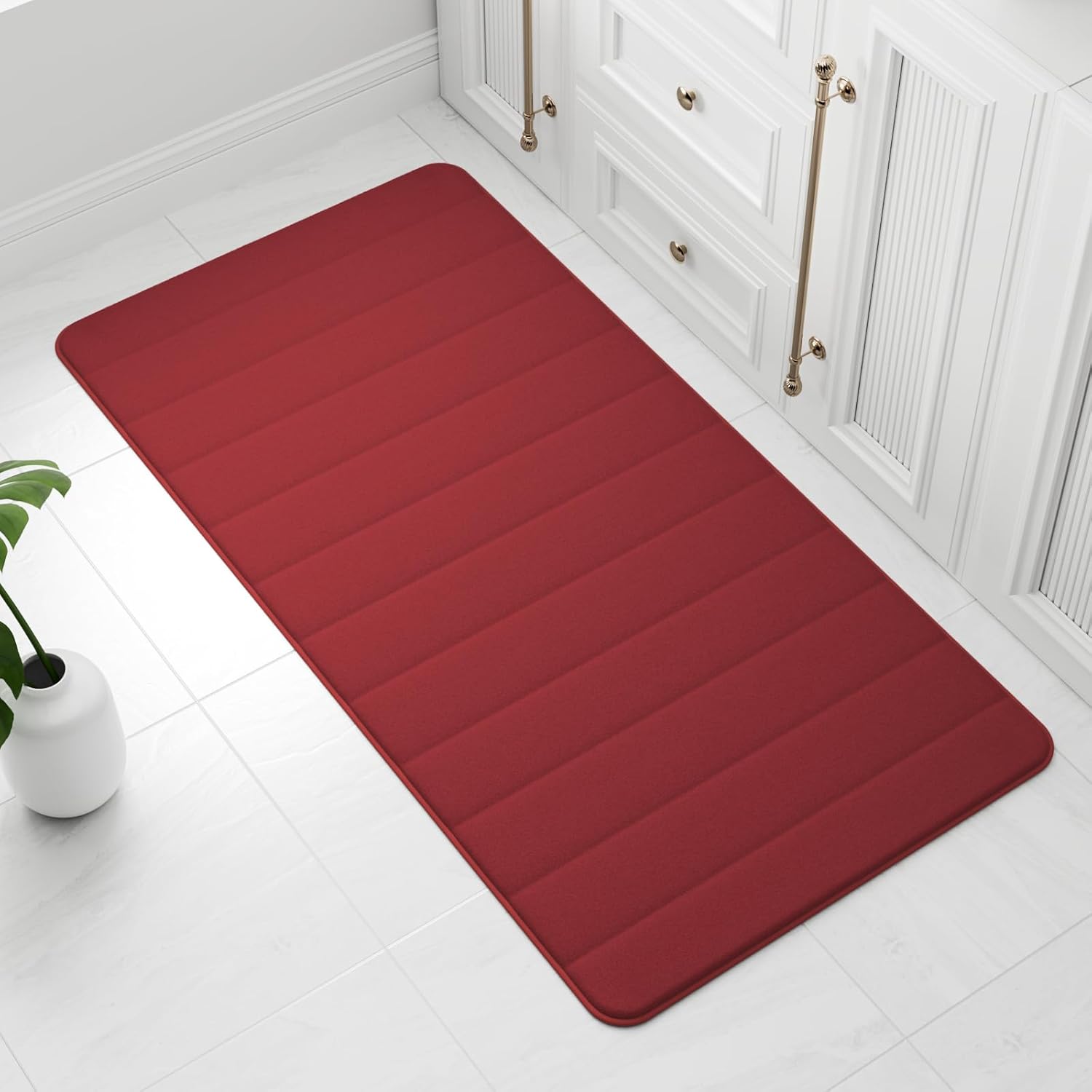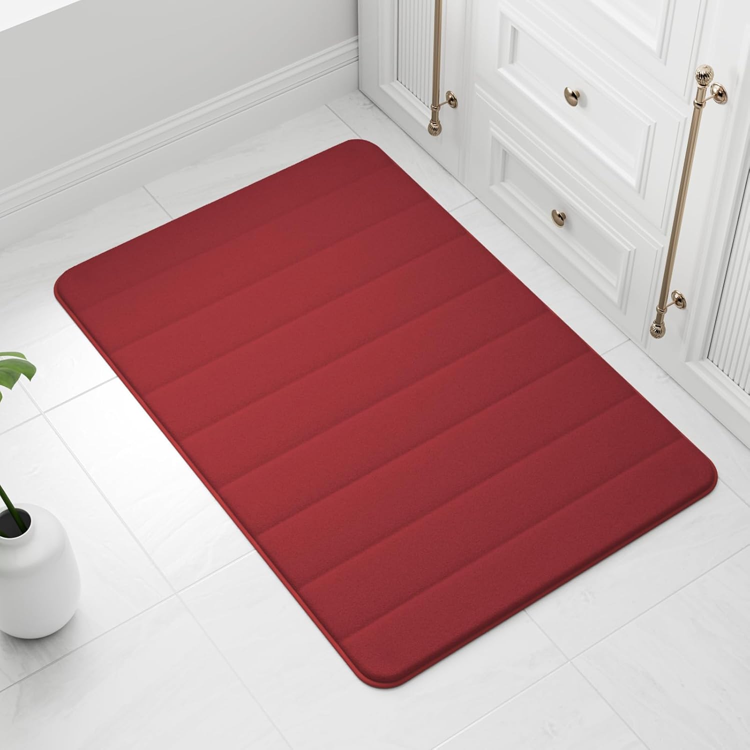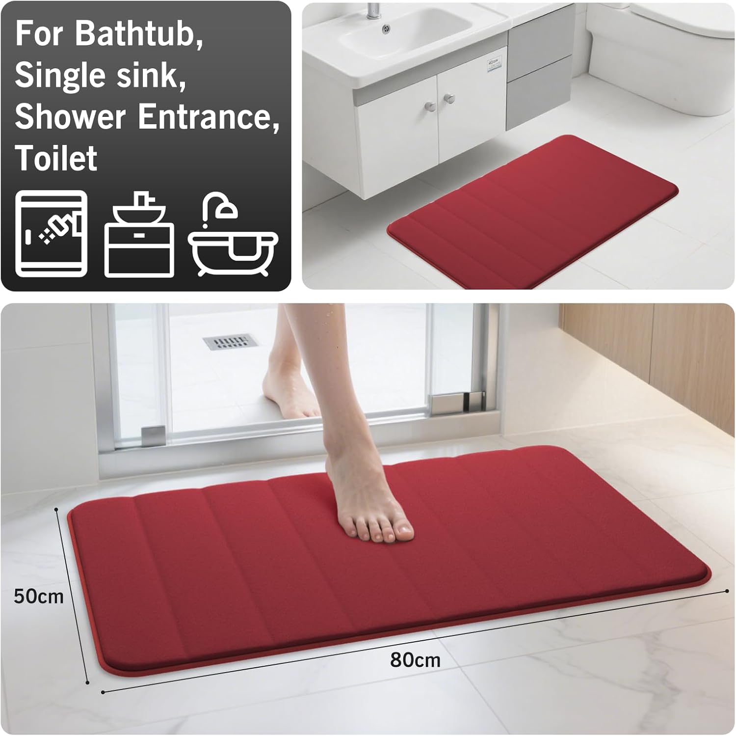 wyewye Килим за баня от мемори пяна 50 x 80 см, червен, ултра мек, неплъзгащ се, с технология за бързо съхнене