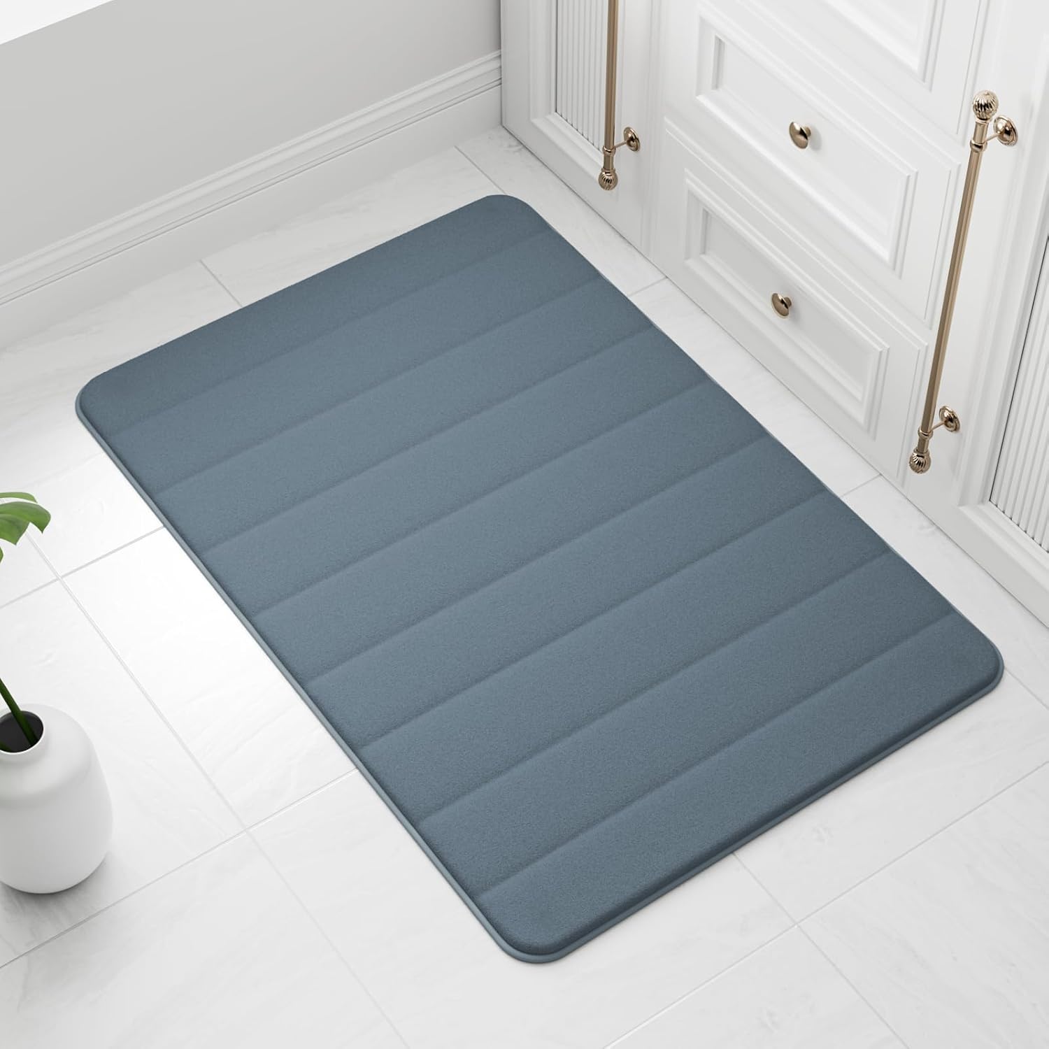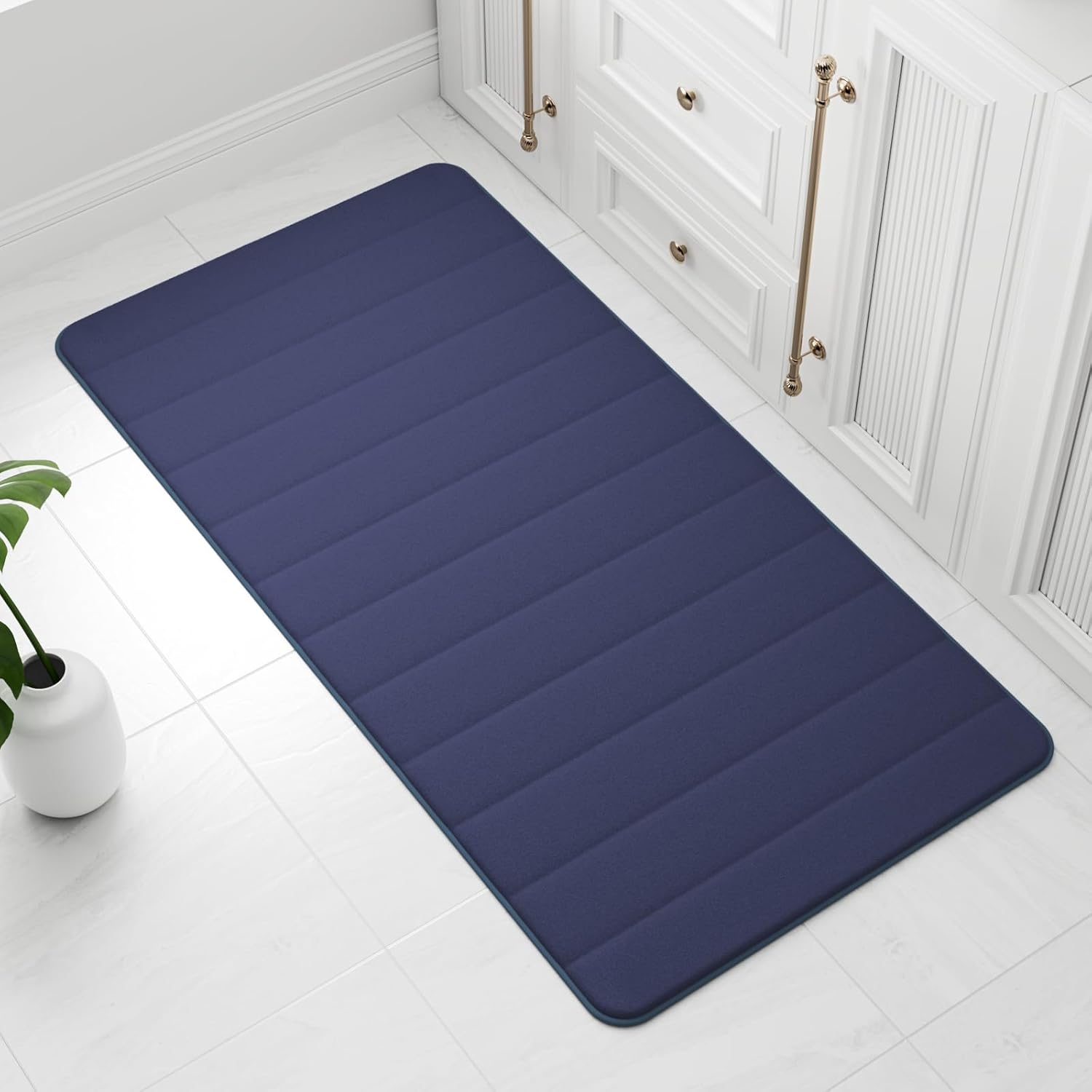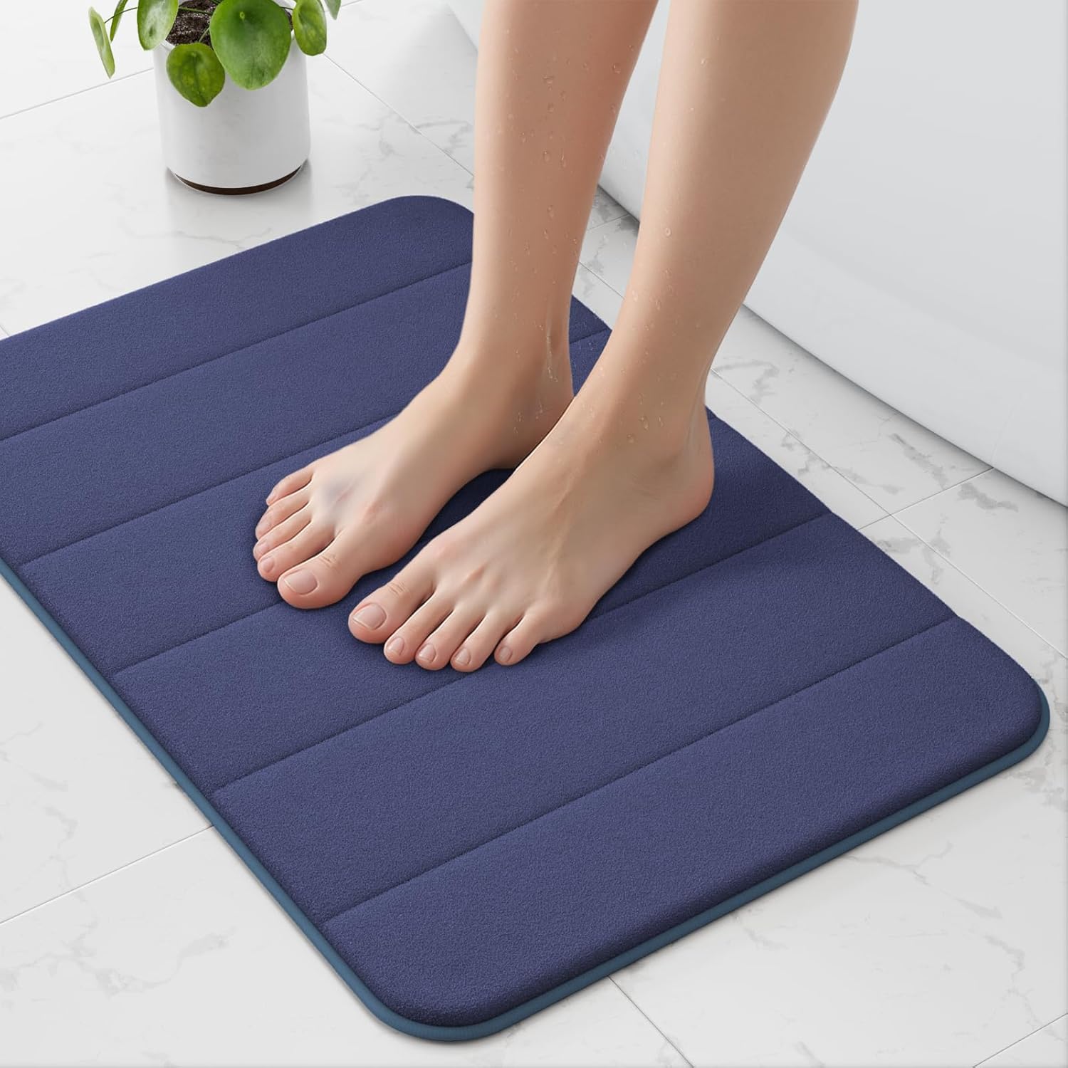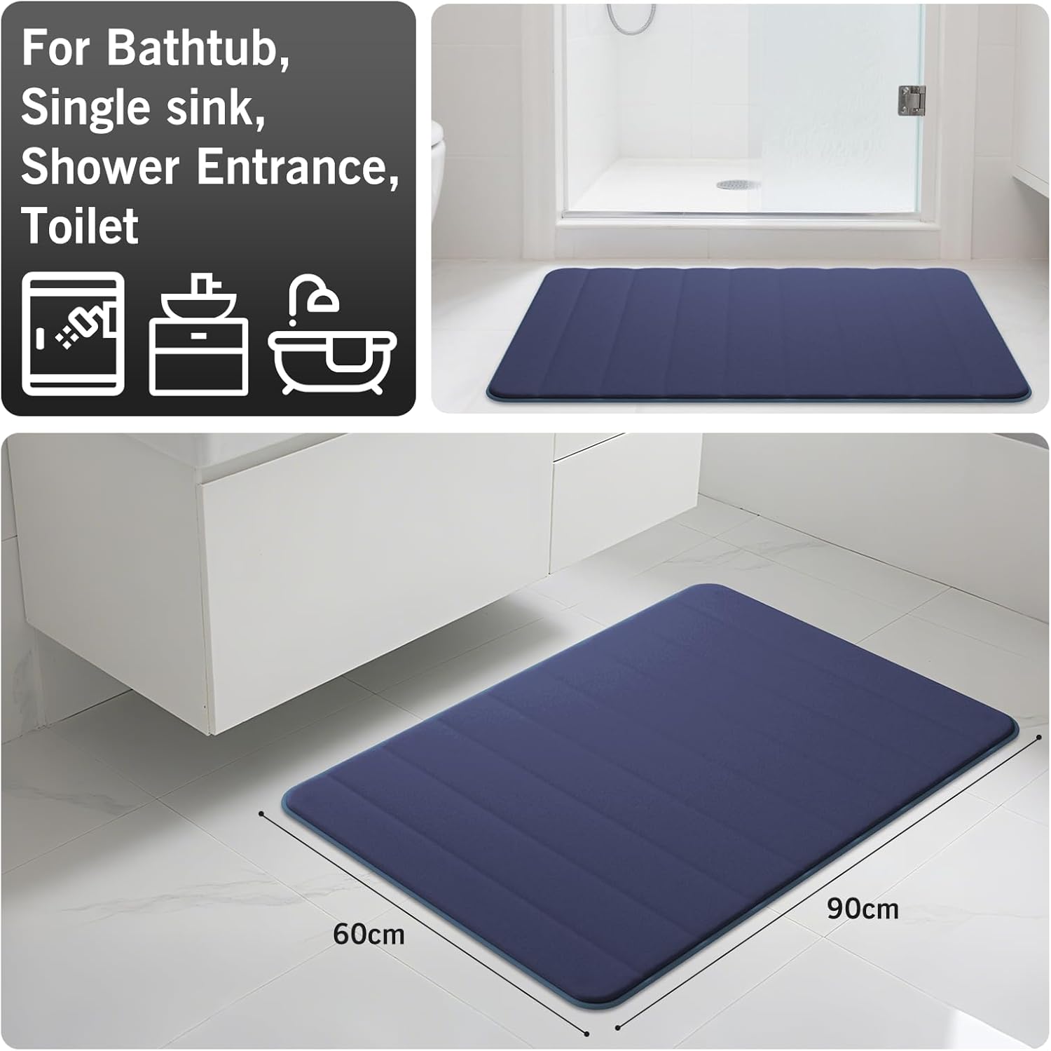 wyewye Килим за баня от мемори пяна 60 x 90 см, тъмносин, ултра мек, неплъзгащ се, с технология за бързо съхнене