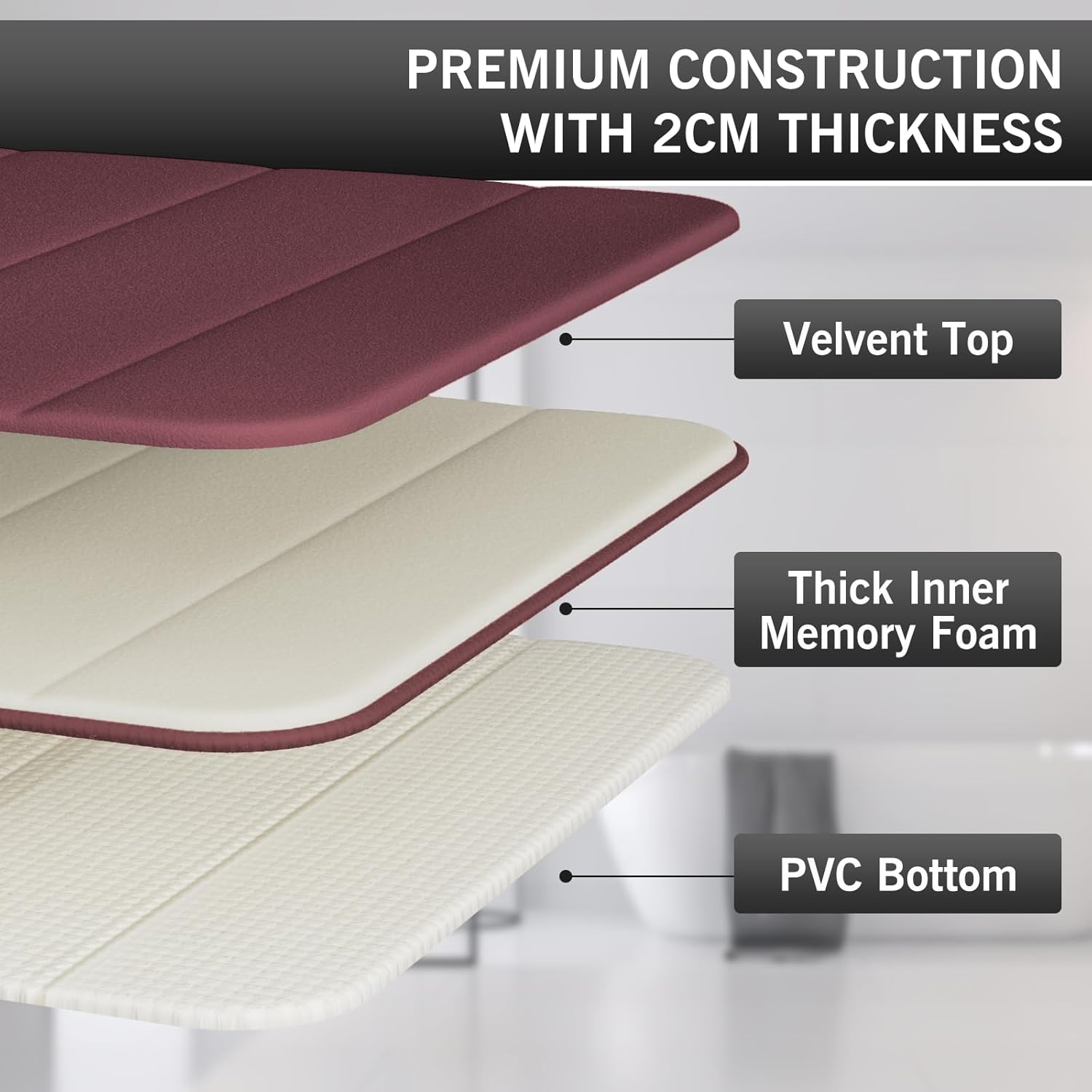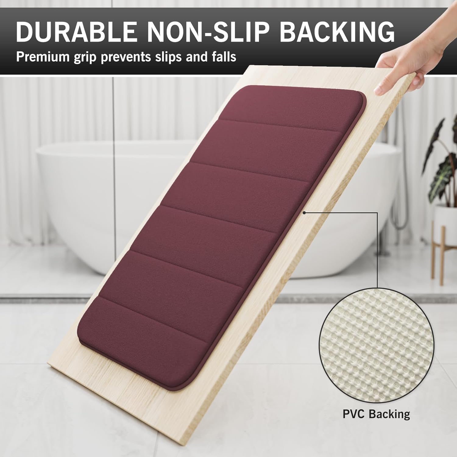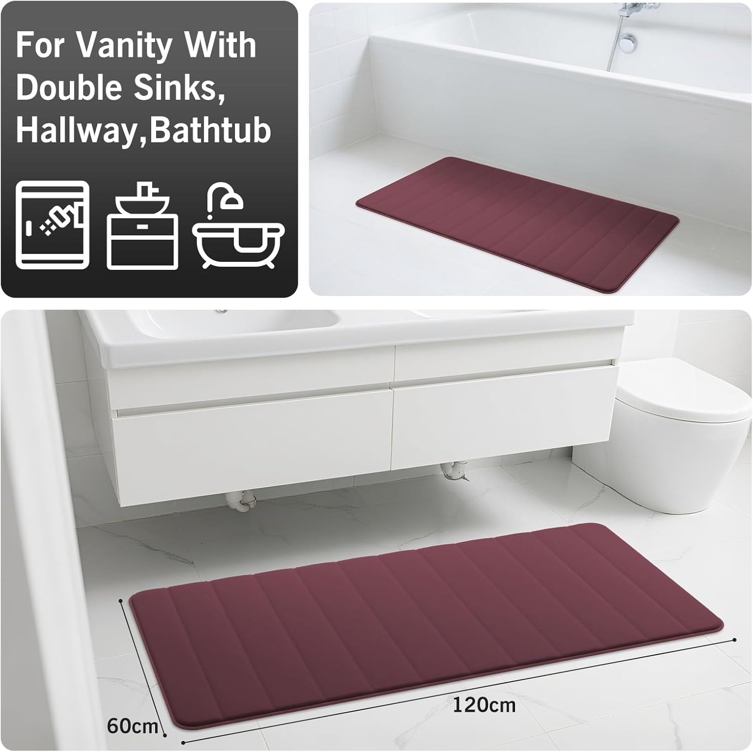 wyewye Килим за баня от мемори пяна 60x120 см, бордо, ултра мек, неплъзгащ се, с технология за бързо съхнене