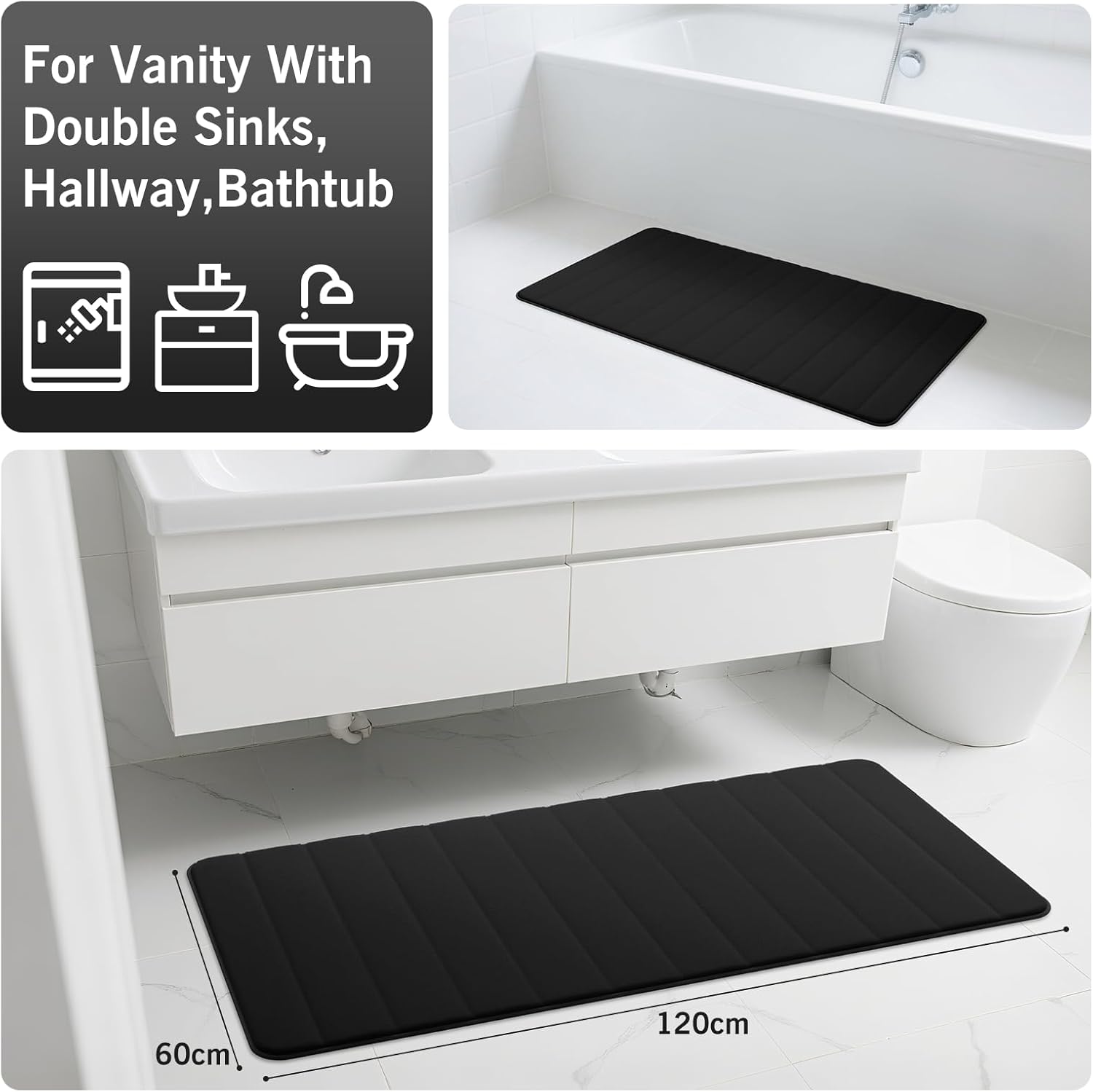 wyewye Килим за баня от мемори пяна 60x120 см, черен, ултра мек, неплъзгащ се, с технология за бързо съхнене