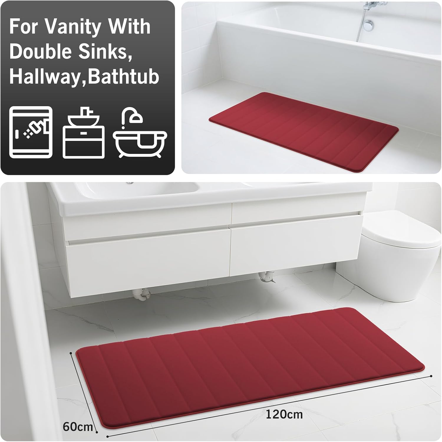 wyewye Килим за баня от мемори пяна 60x120 см, червен, ултра мек, неплъзгащ се, с технология за бързо съхнене