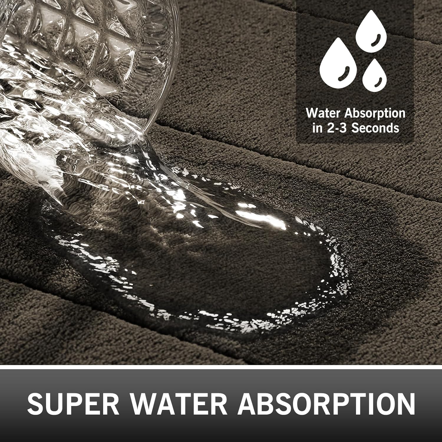 • Светкавично бързо попиване на вода. Проектирана с ултраабсорбираща повърхност от полиестерен микрофибър, тази постелка за баня незабавно отвежда водните капки и поддържа краката ви сухи и топли, след като излезете от ваната или душа. Кажете сбогом на влажните подове.