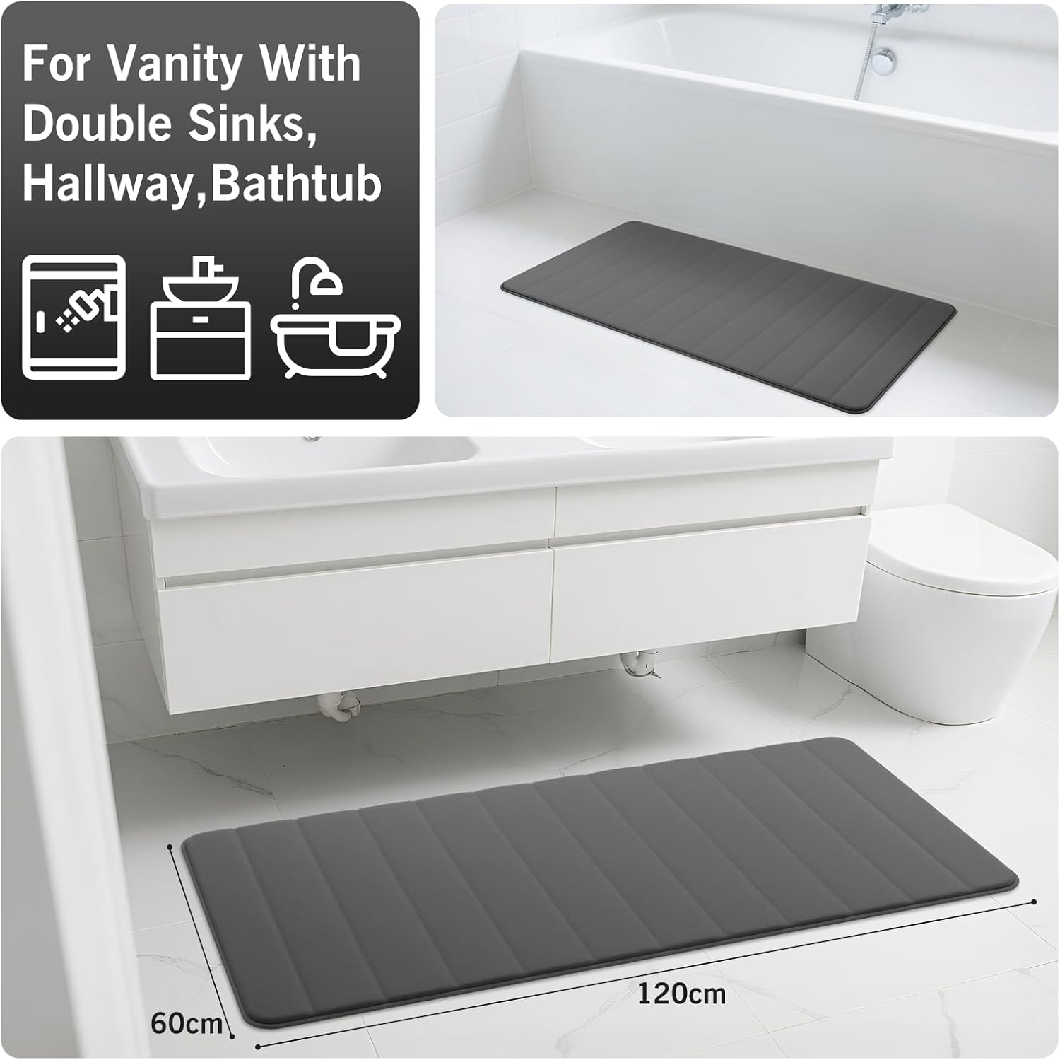 wyewye Килим за баня от мемори пяна 60x120 см, тъмносив, ултра мек, неплъзгащ се, с технология за бързо съхнене