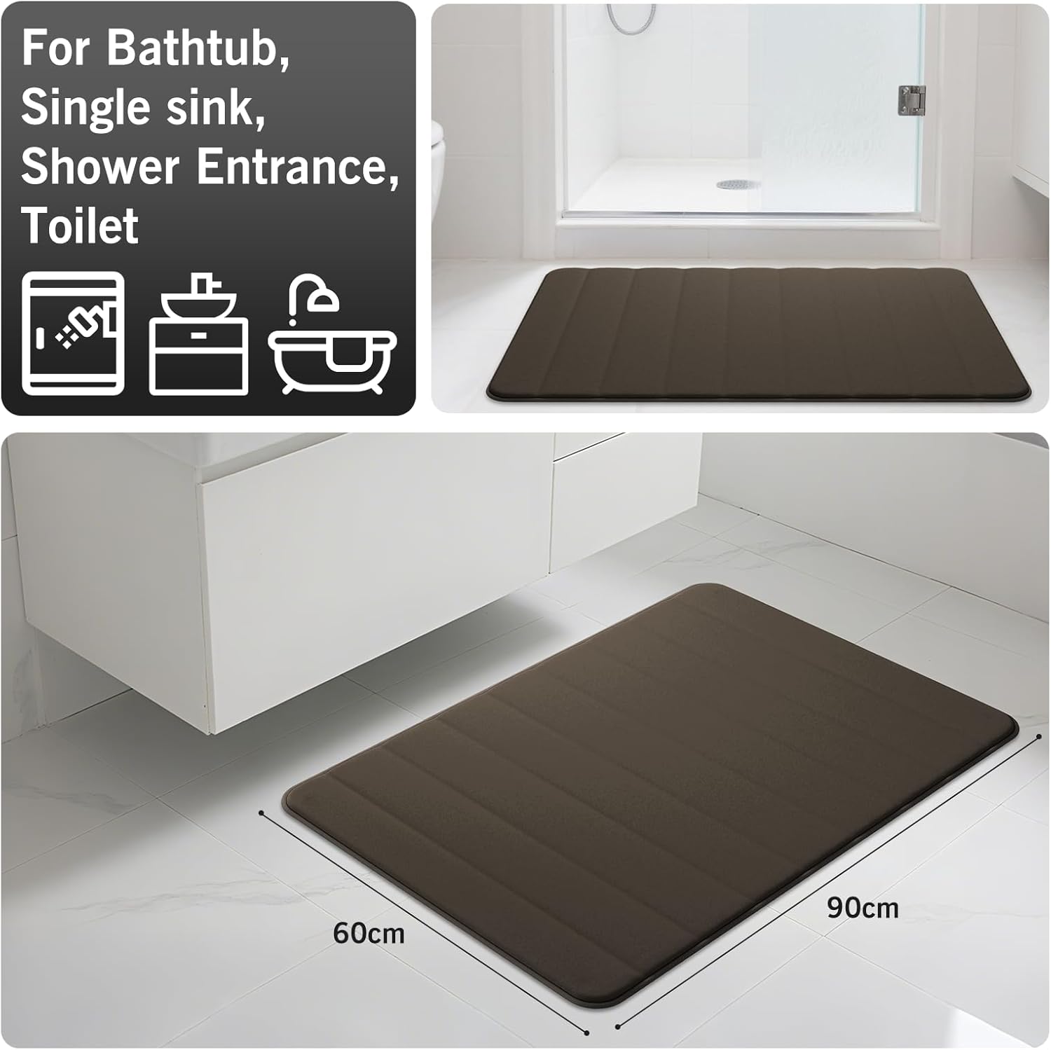 wyewye Килим за баня от мемори пяна 60x90 см, кафяв, ултра мек, неплъзгащ се, с технология за бързо съхнене
