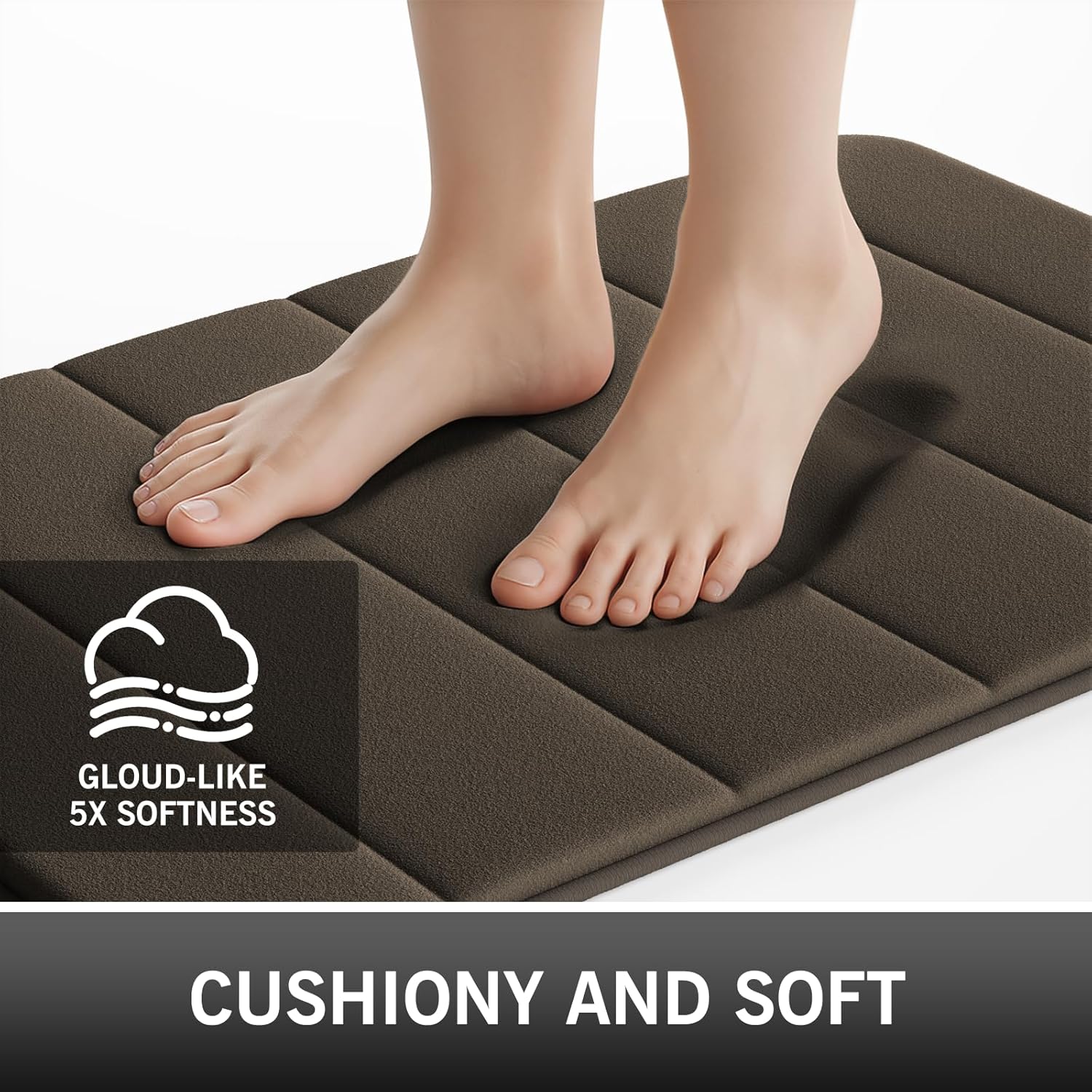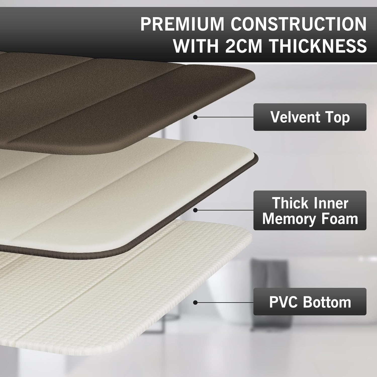 • ПЪРВОКЛАСЕН КОМФОРТ ОТ МЕМОРИ ПЯНА Изпитайте мекота, подобна на облак, с нашата сърцевина от мемори пяна с висока плътност 5/8", която се оформя по краката ви, осигурявайки изключително омекотяване и облекчаване на натиска. Технологията с бавно отскачане нежно масажира уморените стъпала и превръща банята ви в спа център след всеки душ.