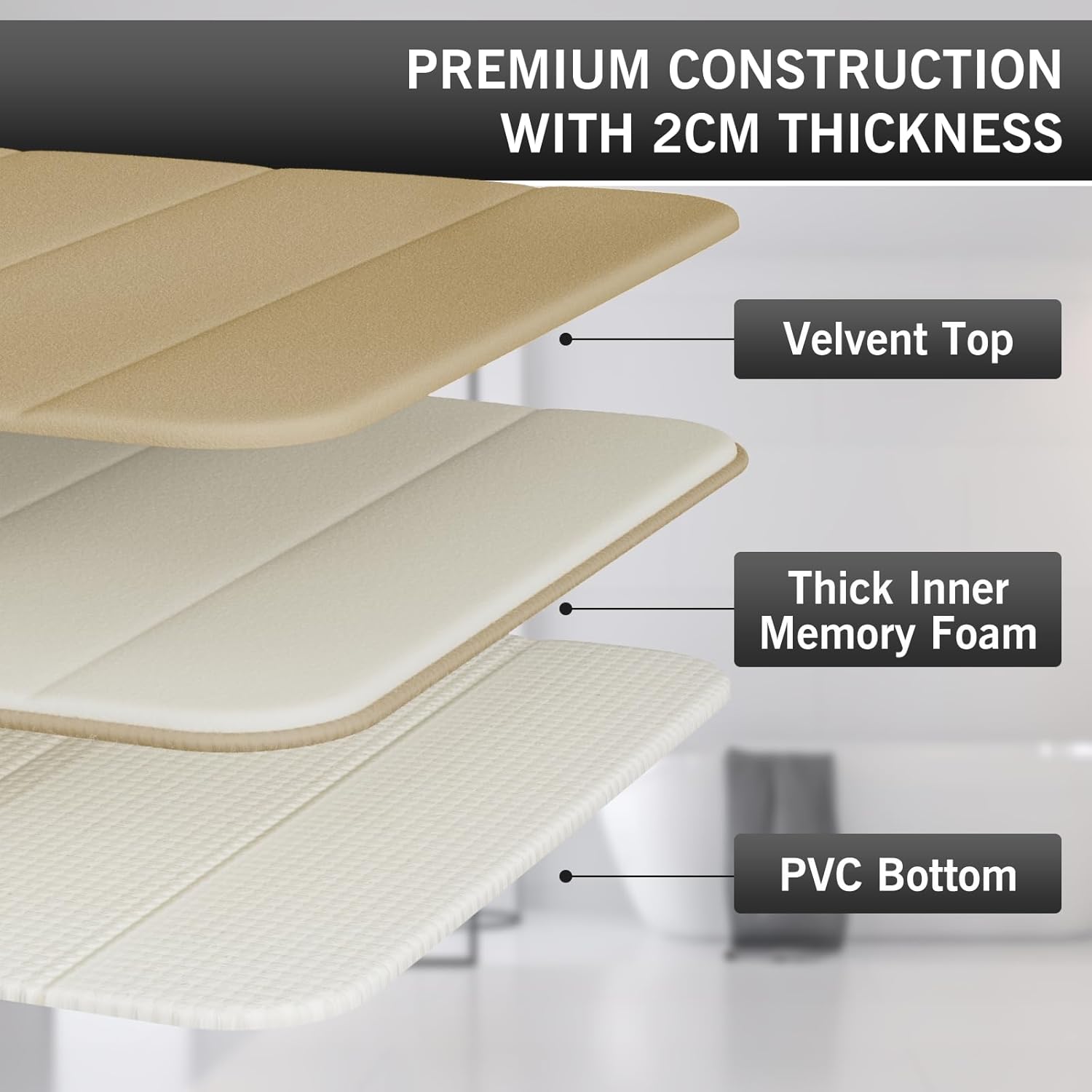 • ПЪРВОКЛАСЕН КОМФОРТ ОТ МЕМОРИ ПЯНА Изпитайте мекота, подобна на облак, с нашата сърцевина от мемори пяна с висока плътност 5/8", която се оформя по краката ви, осигурявайки изключително омекотяване и облекчаване на натиска. Технологията с бавно отскачане нежно масажира уморените стъпала и превръща банята ви в спа център след всеки душ.