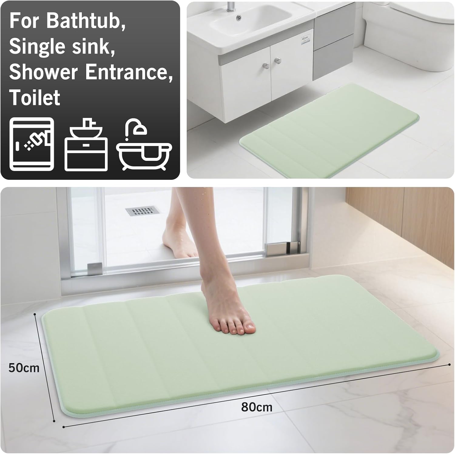 wyewye Килимче за баня от мемори пяна 60 x 90 см, светло зелено - Ултра меко неплъзгащо се килимче за баня с бързосъхнеща технология