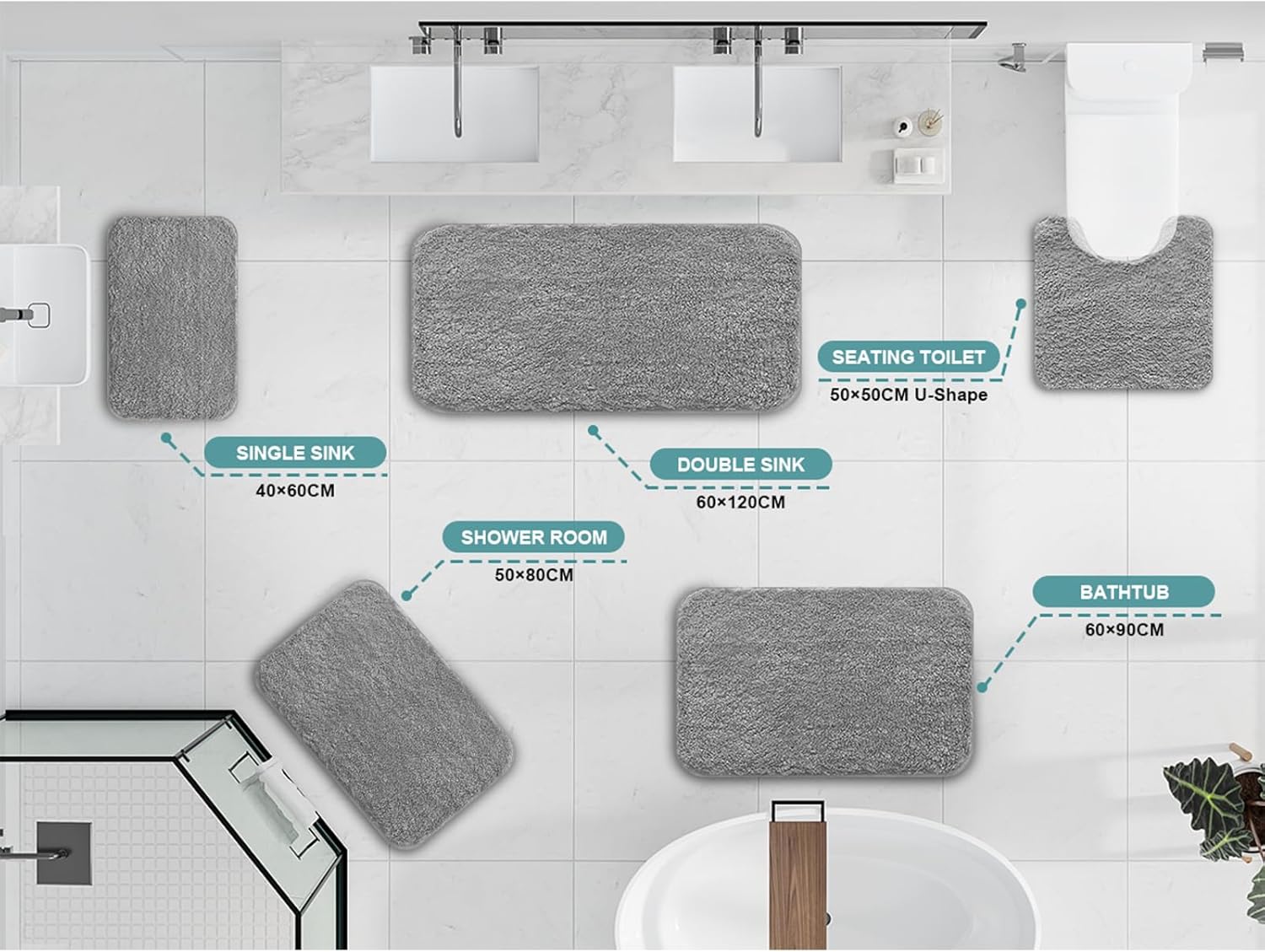 • Налични размери: изберете от 40 x 60 см, 50 x 80 см, 50 x 50 U-образна форма и подходяща. Нашата постелка за баня пасва идеално на всяка баня и ви осигурява достатъчно покритие.