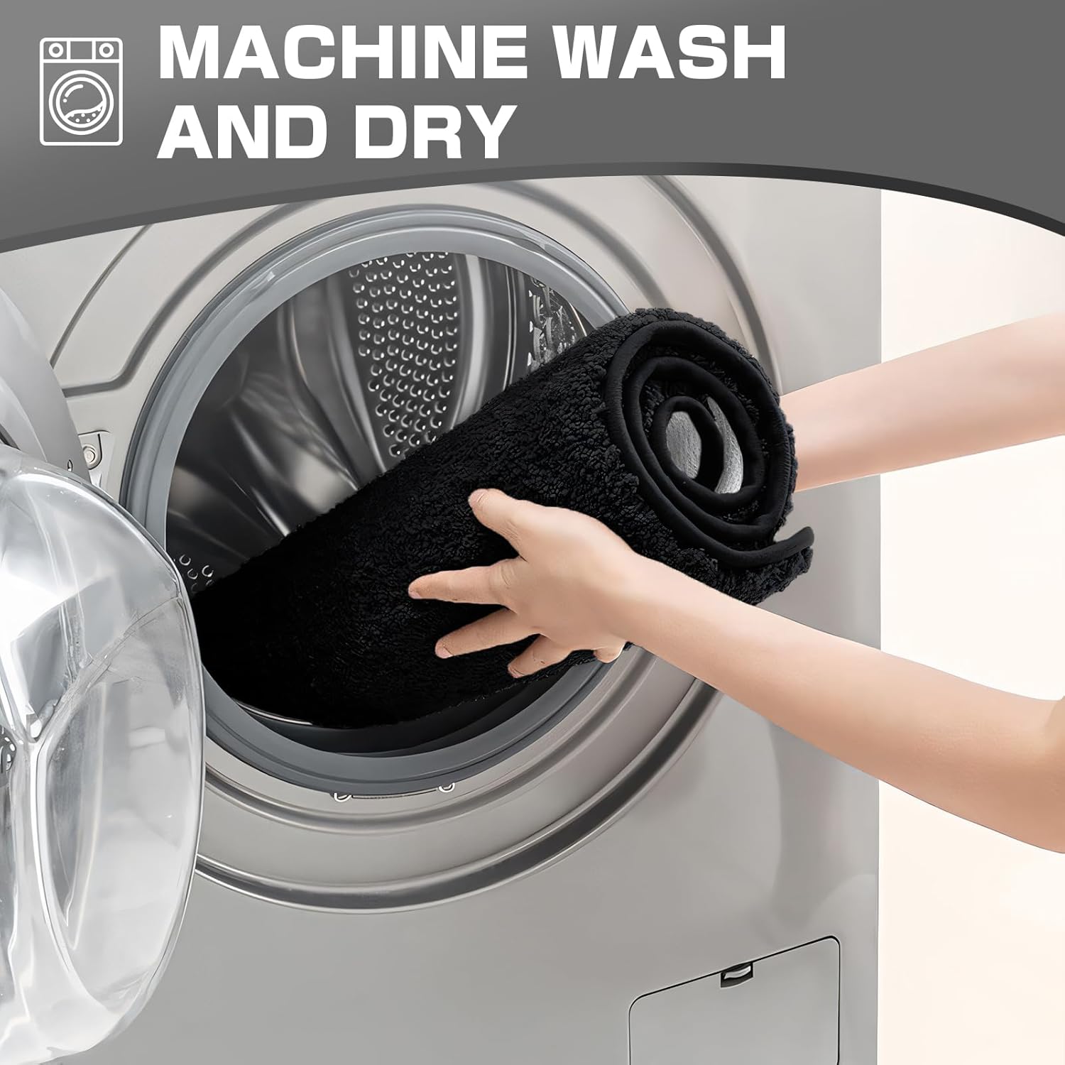 wyewye Микрофибърна постелка за баня, постелка за врата 2 см, супер дебела постелка за баня, супер абсорбиращ килим за баня 60x120 см, черен