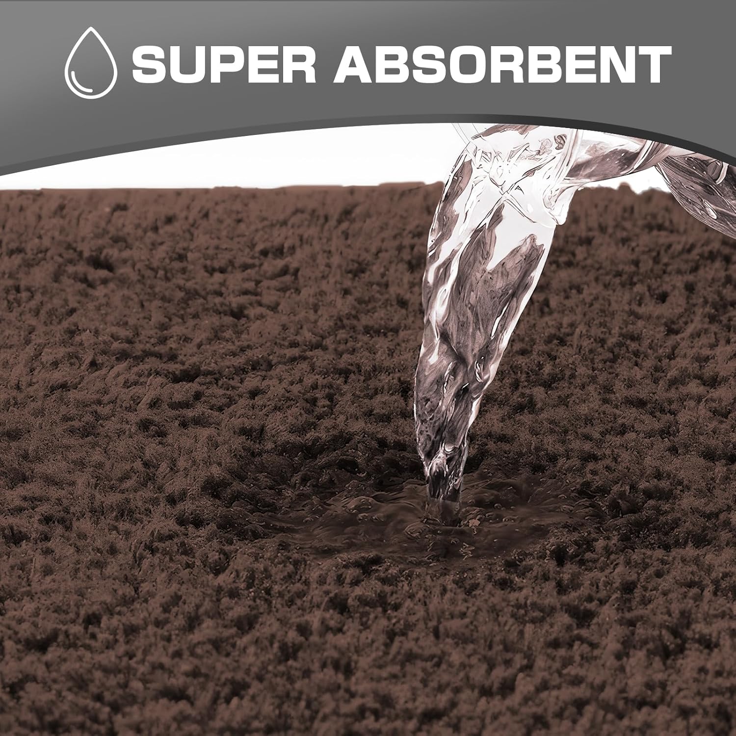 • ИЗКЛЮЧИТЕЛНА АБСОРБЦИОННОСТ Микрофибърната материя с дебелина 2 см има супер водопоглъщане, което кара постелката за баня да абсорбира вода в рамките на няколко секунди след като излезете от банята, поддържайки пода на банята сух и нехлъзгав.