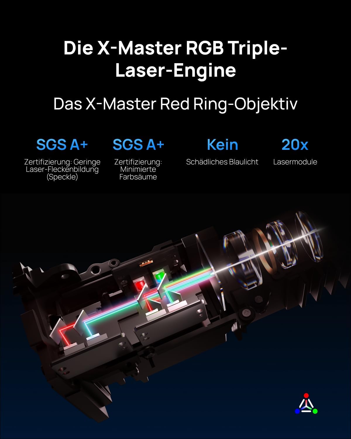 • Троен лазерен блясък на RGB: Потопете се в наситени с цветове, реалистични изображения с тройния лазерен процесор X-Master RGB. Яркостта от 4100 ISO лумена и ултрависокият контраст от 20 000:1 придават на всяка сцена впечатляваща яркост и дълбочина, денем и нощем.