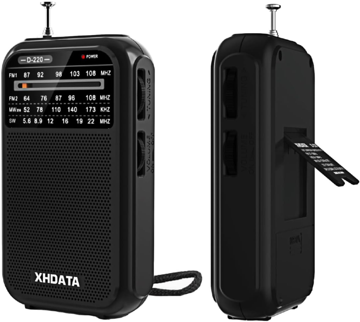 XHDATA D220 Радио малко, FM AM FM радио, Носталгично радио с батерии, Световно радио с приемник, Джобно радио с отлично качество на приемане, За семейството и възрастните хора (Зелено)