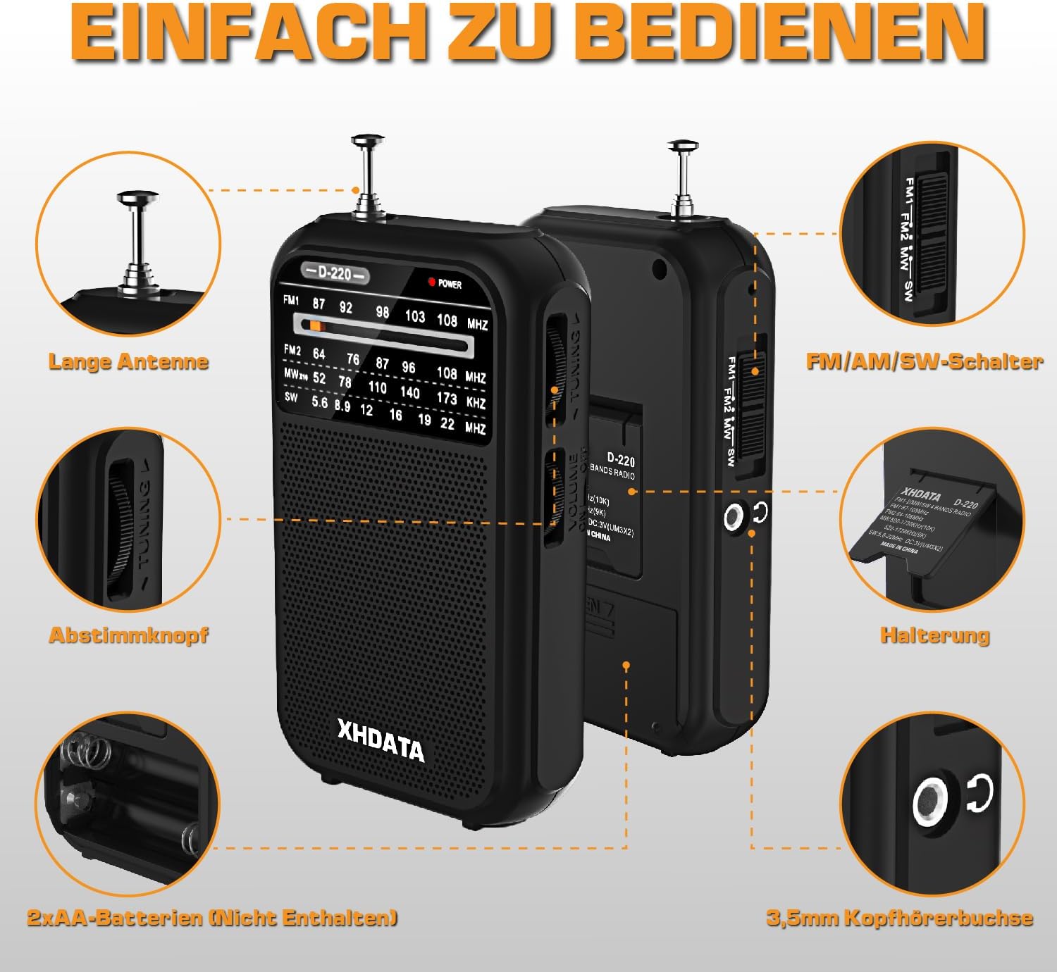 • Висококачествено обслужване: Пакетът включва: 1 x XHDATA D220 радио, 1 x ръководство за потребителя (английски език не е гарантиран).