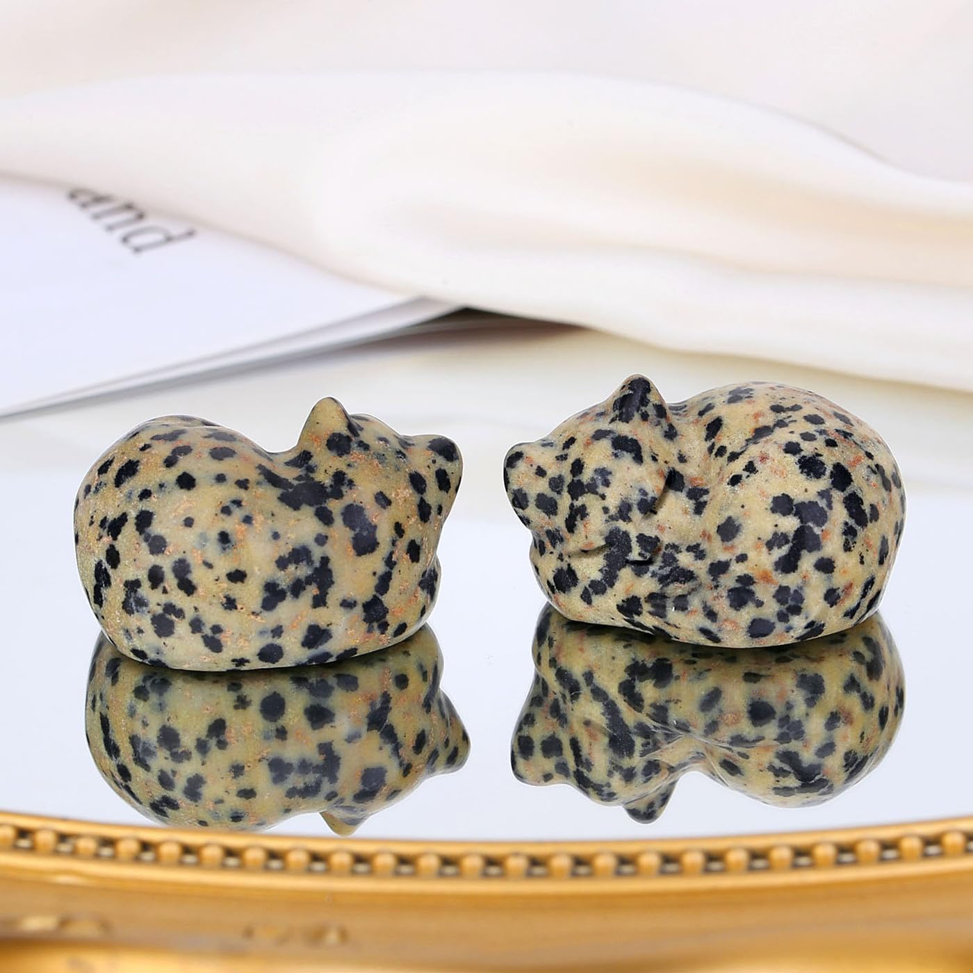 • Фигура на котка от аметист: Смята се, че камъкът аметист е невероятно защитен, лечебен и пречистващ. Аметистът може да помогне за освобождаване на ума от негативни мисли и да изведе наяве смирение, искреност и духовна мъдрост. Кристалите аметист също така спомагат за насърчаване на трезвостта.