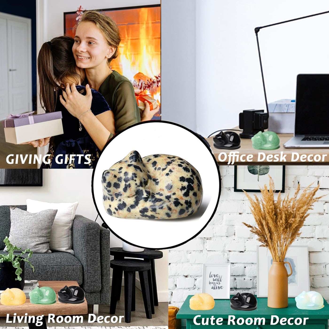 • Подарък с котка: котката е символ на защита и се счита за част от семейството. В същото време котките се възприемат и като символ на лоялност и близко другарство. Лечебният кристален орнамент с котка може да ни донесе чувство на комфорт, подходящ е като подарък с котка за жени, за любители на котки, приятели, семейство, ще донесе дълбок мир, ще помогне на мислите ни да се фокусират, да намерим радост в него!