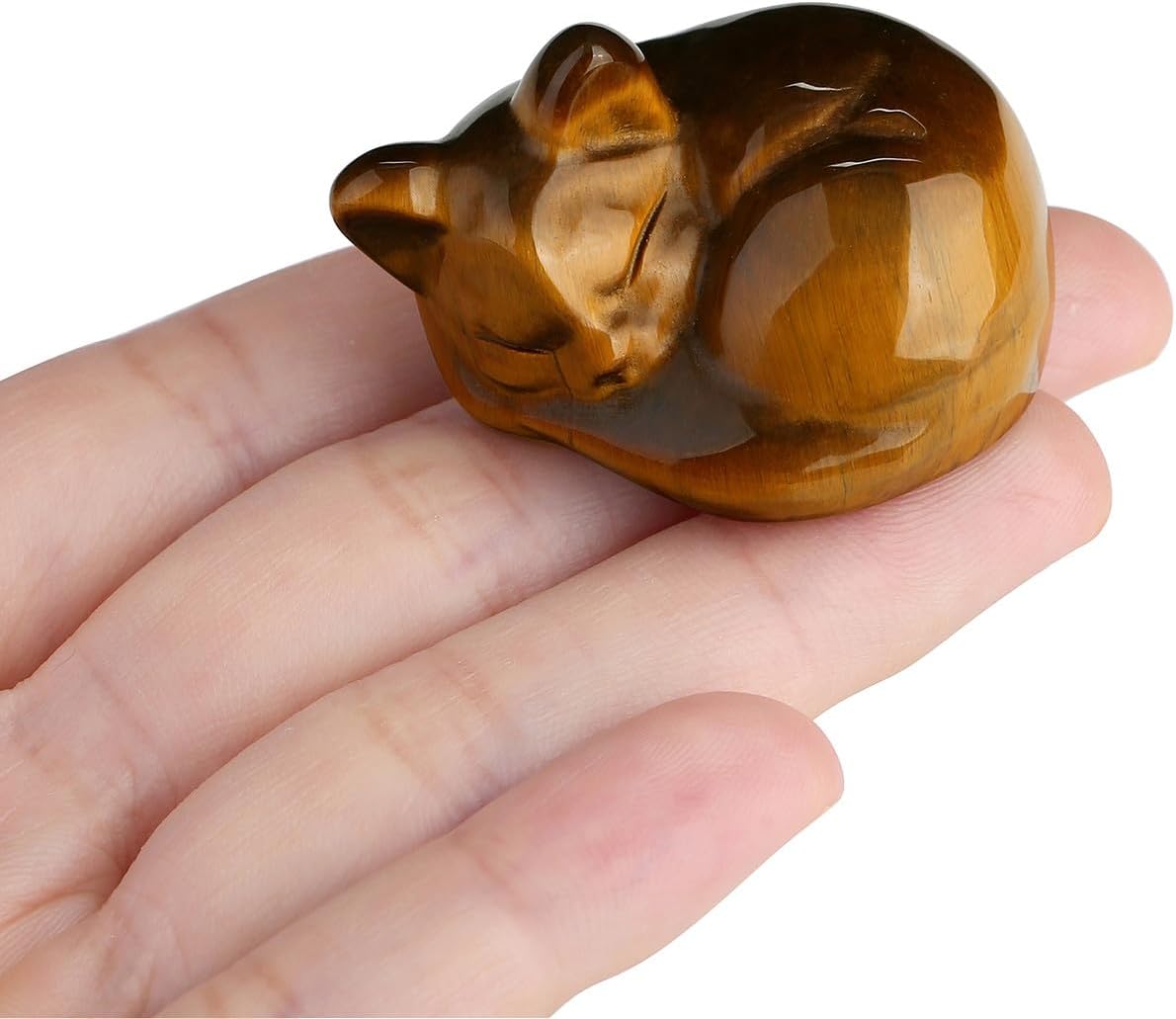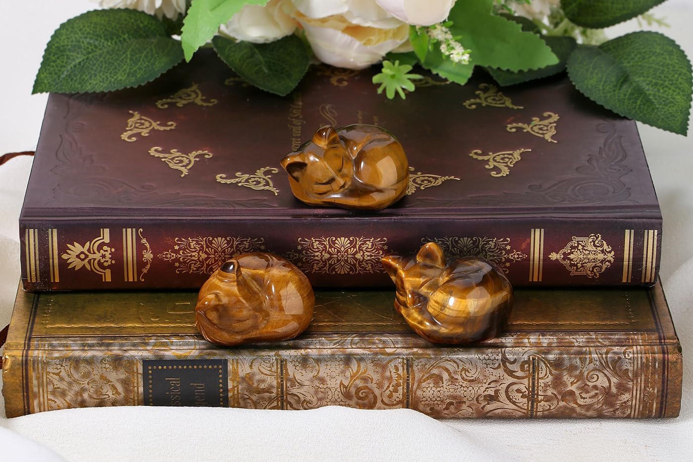 XIANNVXI Тигрово око, кристали за котка, фигурка на котка, полиращи камъни, спяща котка, Kawaii, сладка талисман за късмет, декорация с котка, подарък за рожден ден, любители на котки, декорация за бюро.