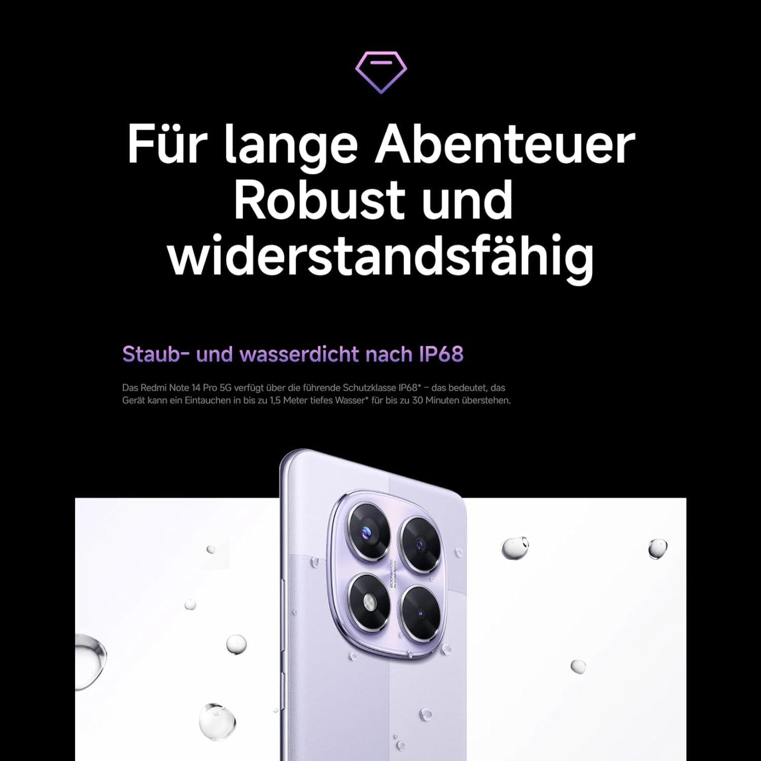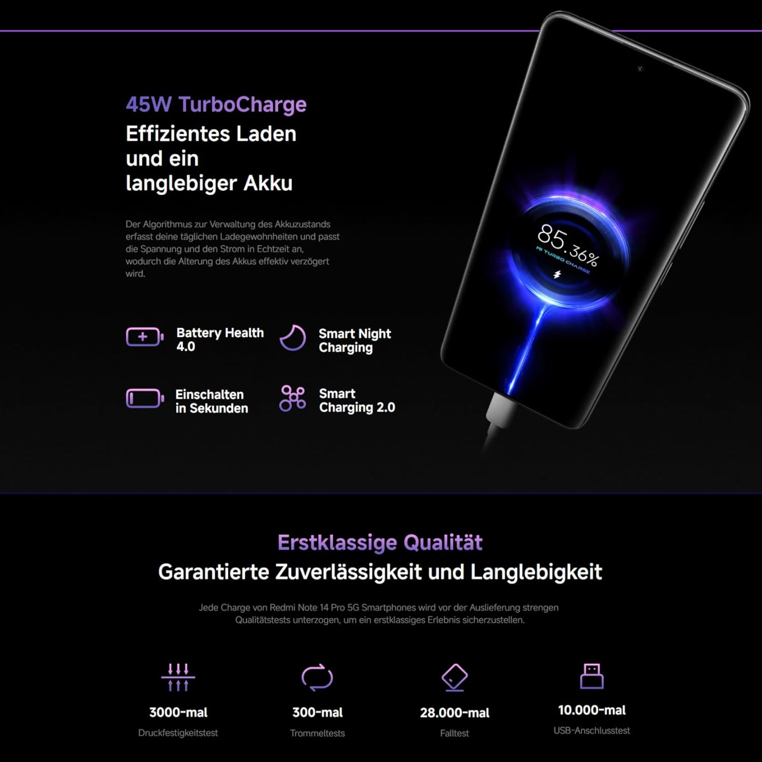 Xiaomi Redmi Note 14 Pro, 5G смартфон, 12 + 512 GB, черен, 200 MP професионална AI камера, IP68, 45 W TurboCharge с батерия 5110 mAh, AI функции (зарядното не е включено)