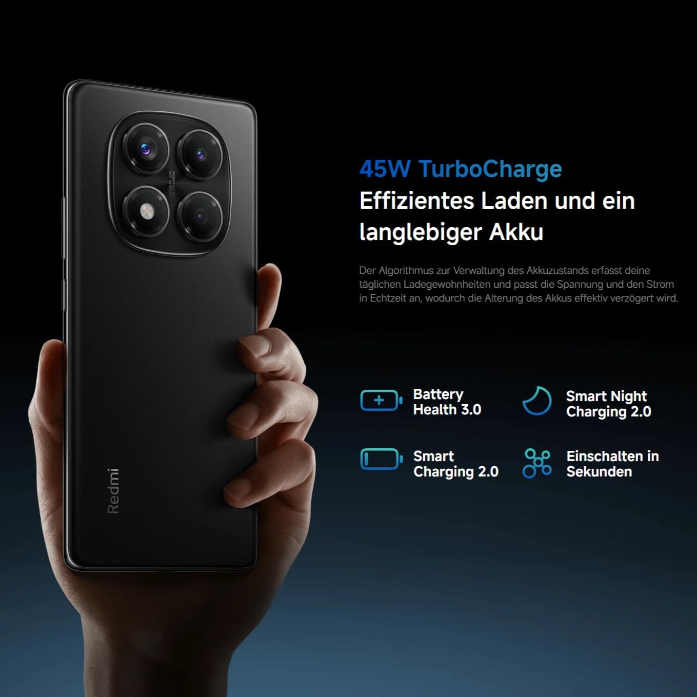 Xiaomi Redmi Note 14 Pro, смартфон, 8 + 256 GB, черен, 200 MP професионална AI камера, батерия 5500 mAh, 32 MP селфи камера, AI функции (зарядното не е включено)