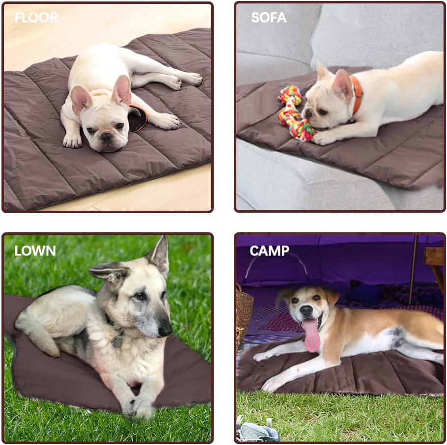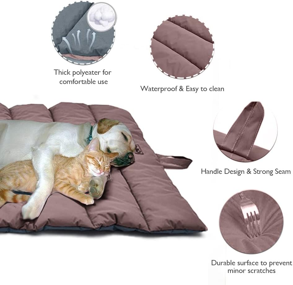 XIAPIA Водоустойчива постелка за кучета за външна употреба, перещо се кучешко легло, антистатично, хигиенично, сгъваемо, голямо одеяло за пътуване за домашни любимци, 110 x 68 см (кафяво/синьо)