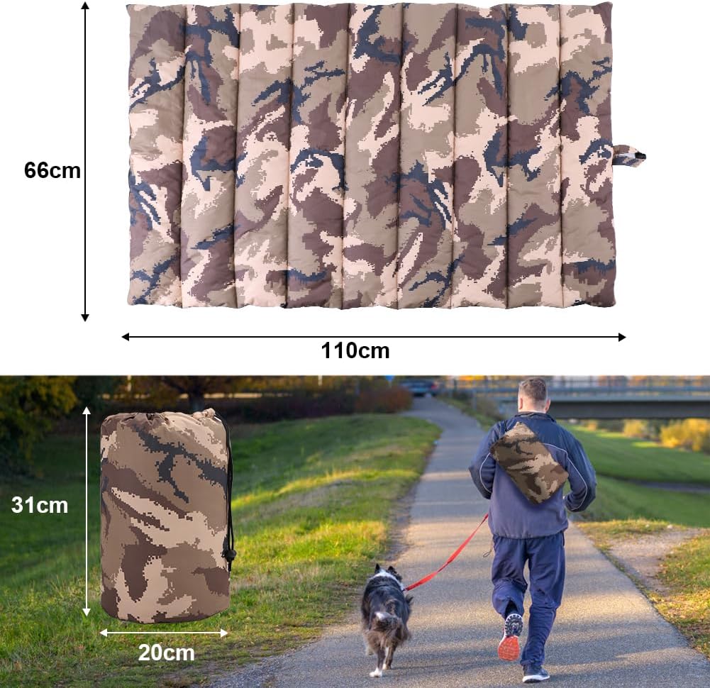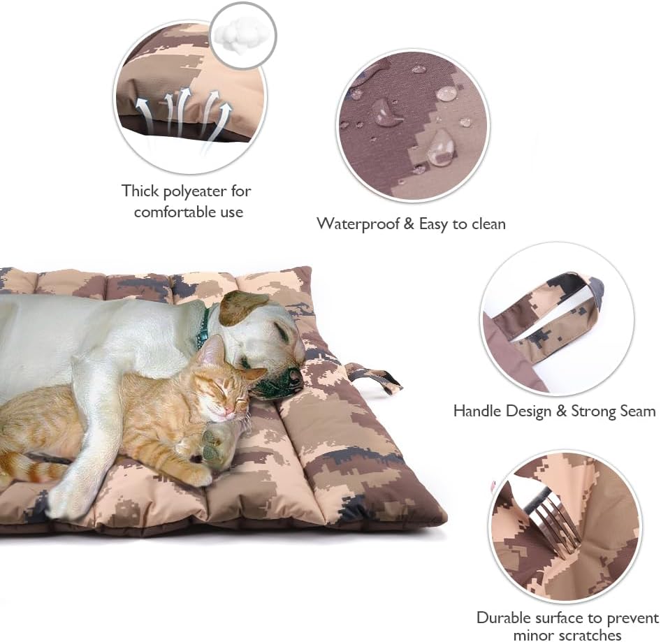 XIAPIA Водоустойчива постелка за кучета за външна употреба, перещо се кучешко легло, антистатично, хигиенично, сгъваемо, голямо одеяло за пътуване за домашни любимци, 110 x 68 см (камуфлажно кафяво)