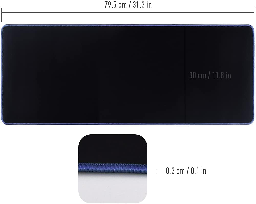 XMONKEY Геймърска подложка за мишка, Голяма неплъзгаща се подложка за мишка с шевни ръбове за лаптоп, компютър, гейминг, настолна подложка, Размер: 80 x 30 см, Синя