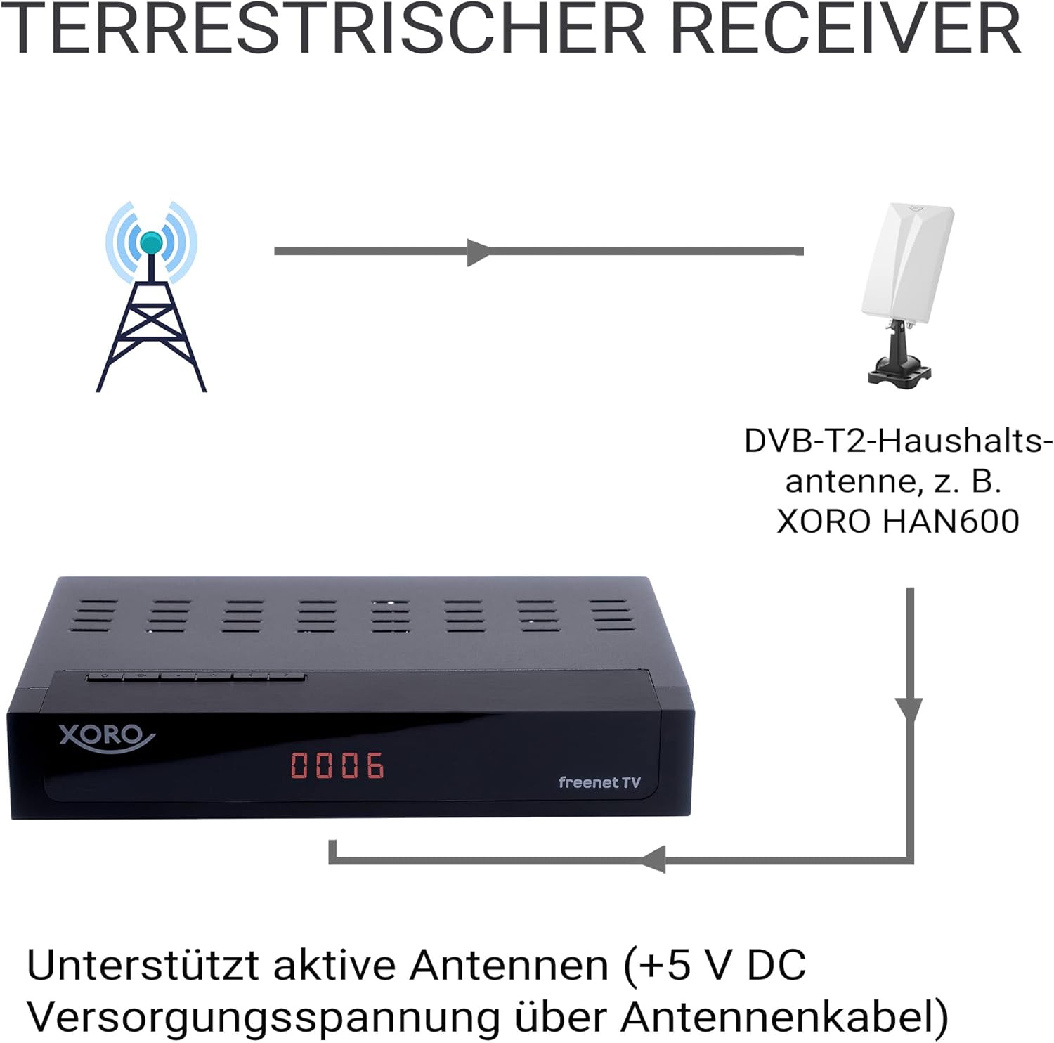 XORO HRT 8770 TWIN не само позволява приемане на цифрови антенни сигнали, но е подходящ и за некриптирани предаватели на цифрова кабелна телевизия, което ви позволява да се наслаждавате на широка гама от програми.