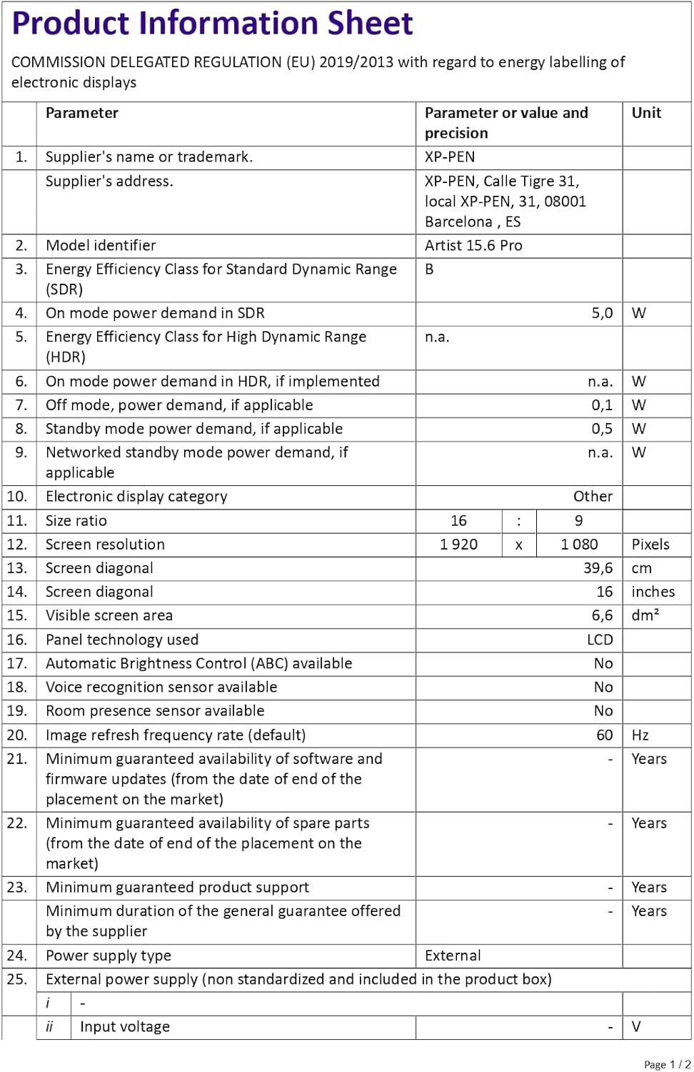 • Графичен таблет XPPen Artist 15.6 PRO: 15.6-инчов HD IPS екран, дебелина 11 мм, с бутон за яркост. Резолюция 1920x1080, ъгъл на видимост 178°.