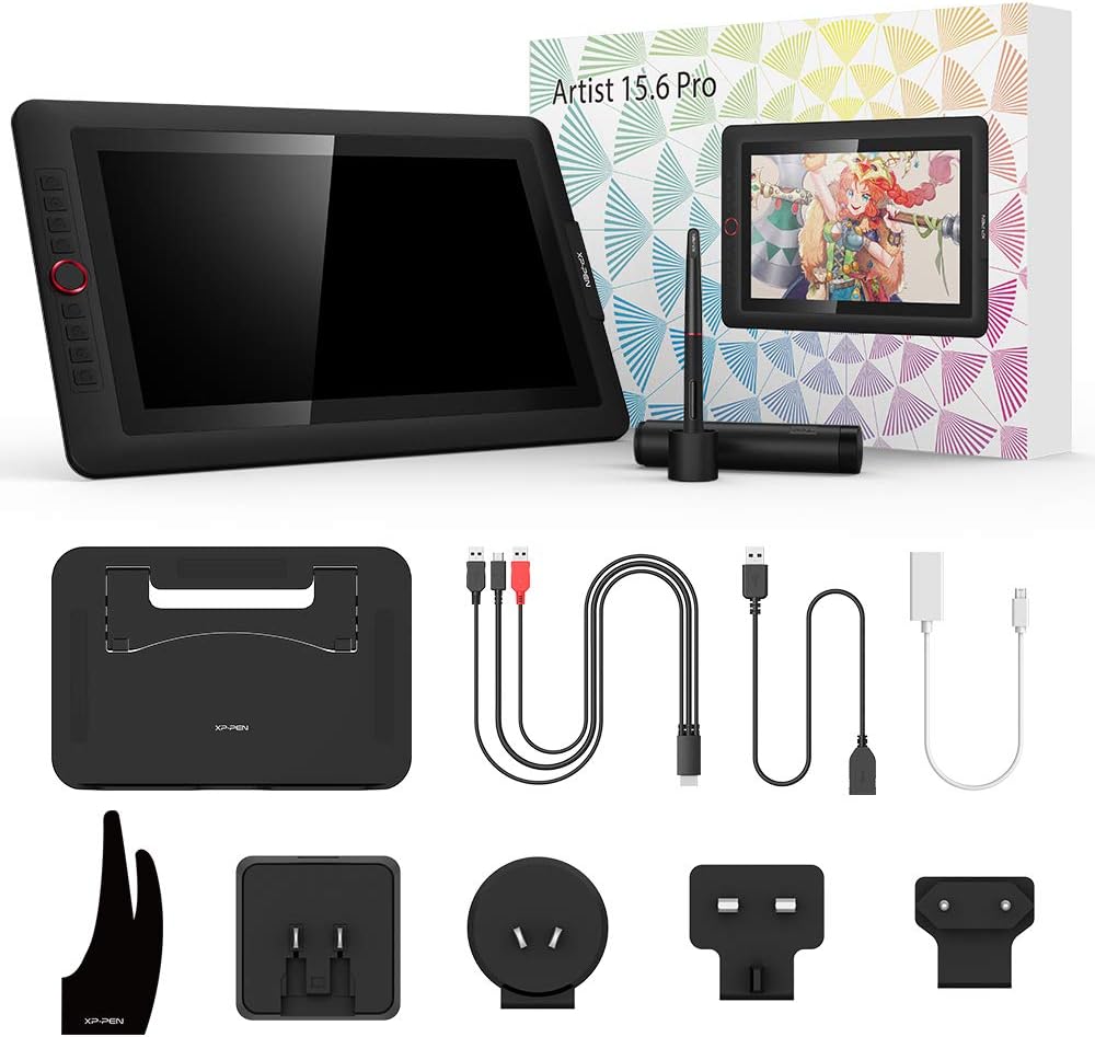 XP-PEN Artist 15.6 Pro Графичен монитор 15.6 инча HD IPS писалка с функция накланяне Графичен таблет с 8 бързи клавиша Писалка, идеална за домашен офис и електронно обучение, редактиране на снимки