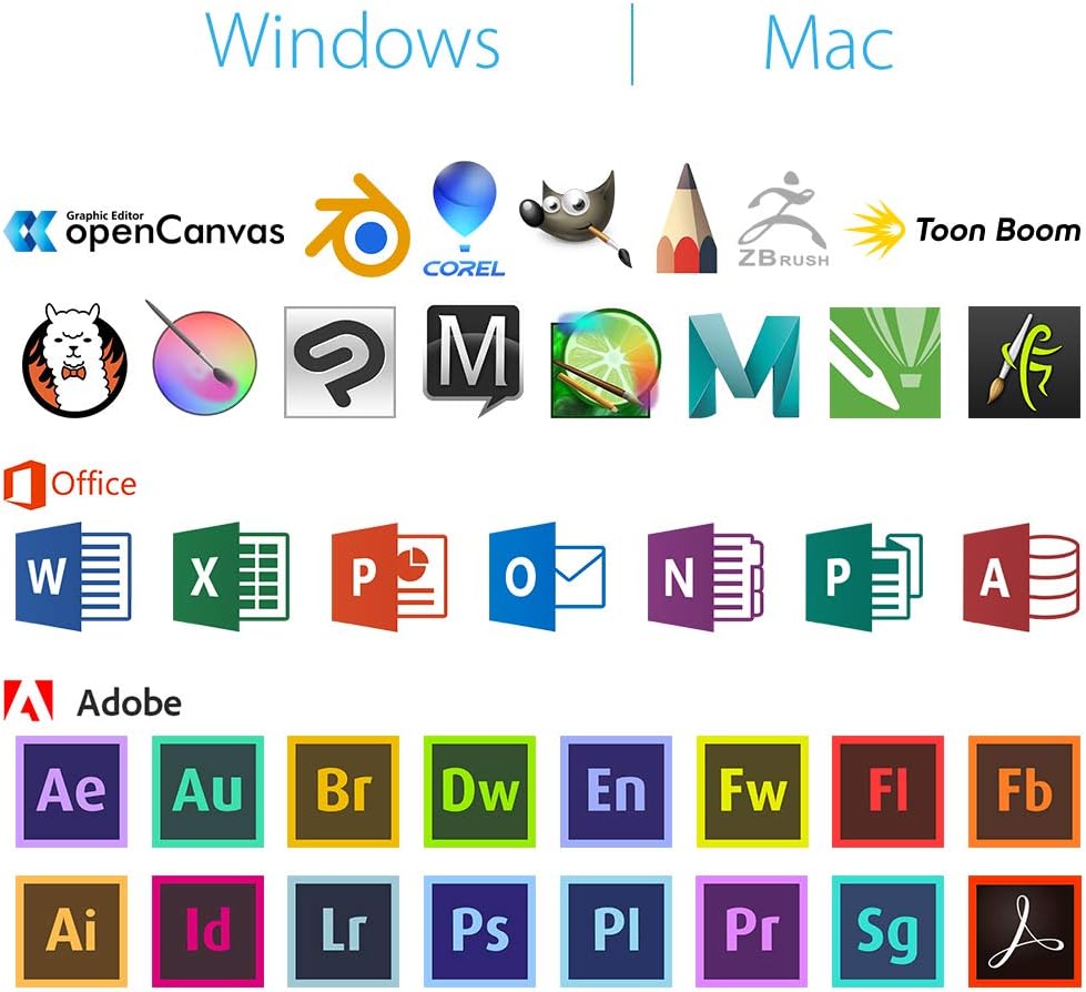 • Универсална съвместимост: Съвместим с Windows 10/8/7 (32/64 bit), Mac OS X 10.10 или по-нова версия и работи с основни графични програми като Photoshop, Painter, Illustrator, Clip Studio и други.