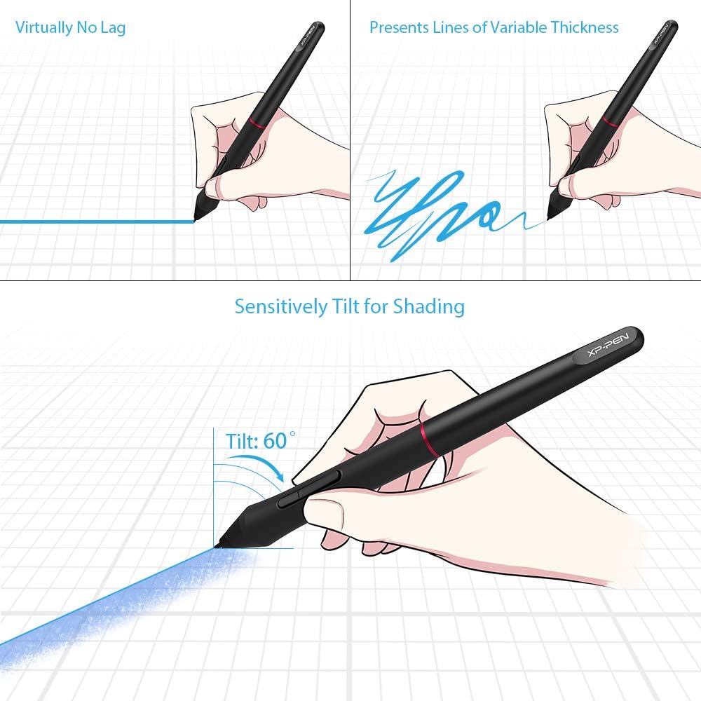 • Пасивен стилус с 8192 нива и функция за накланяне от 60 градуса: Функцията за накланяне от 60 градуса позволява на Artist 15.6 Pro бързо да разпознава движенията на писалката, осигурявайки прецизна имитация на истински ефект на наклонена четка, идеален за създаване на сенки като с истинска писалка. 8192-те нива на натиск осигуряват плавно рисуване, подобно на това върху истинска хартия. Включени са също държач за писалка за удобно съхранение на писалката и осем резервни върха за писалка.