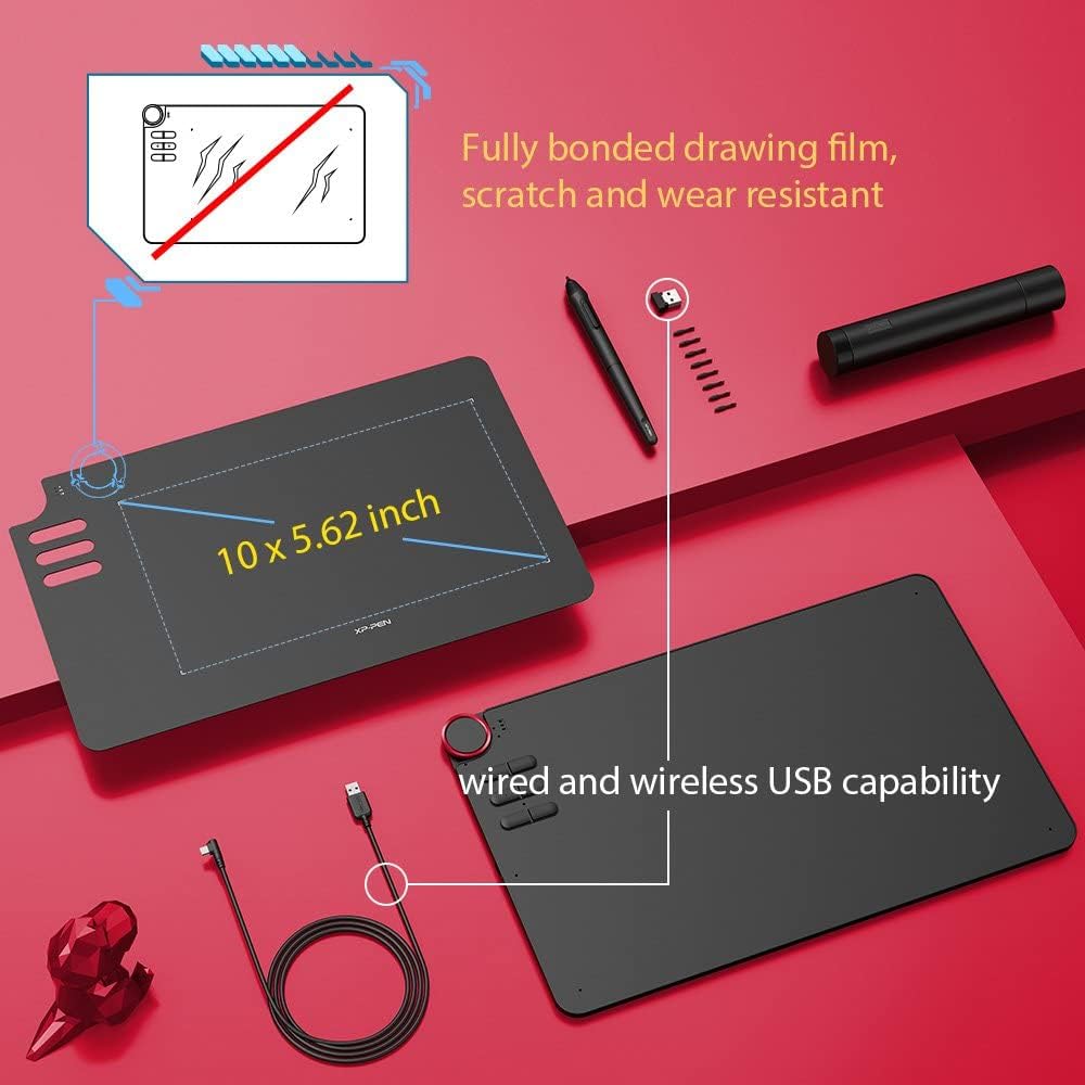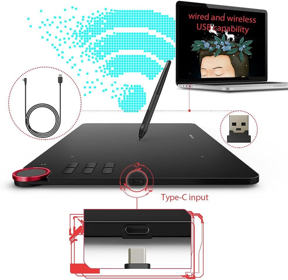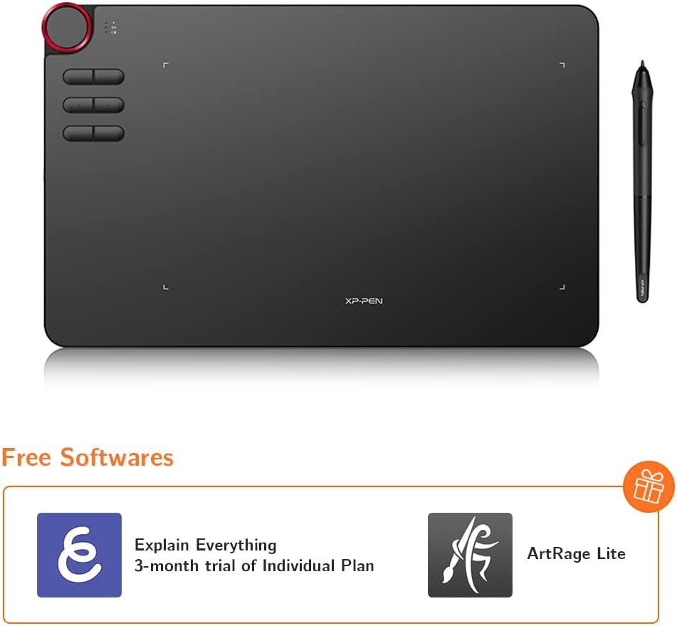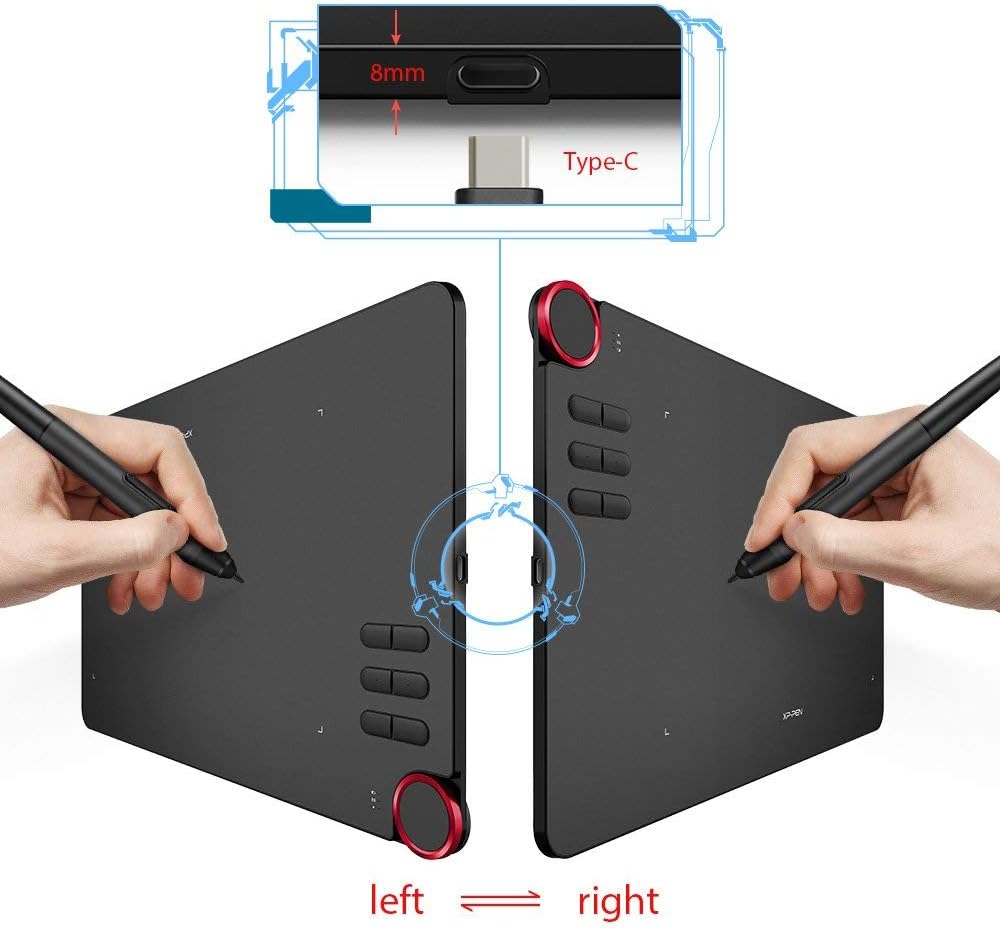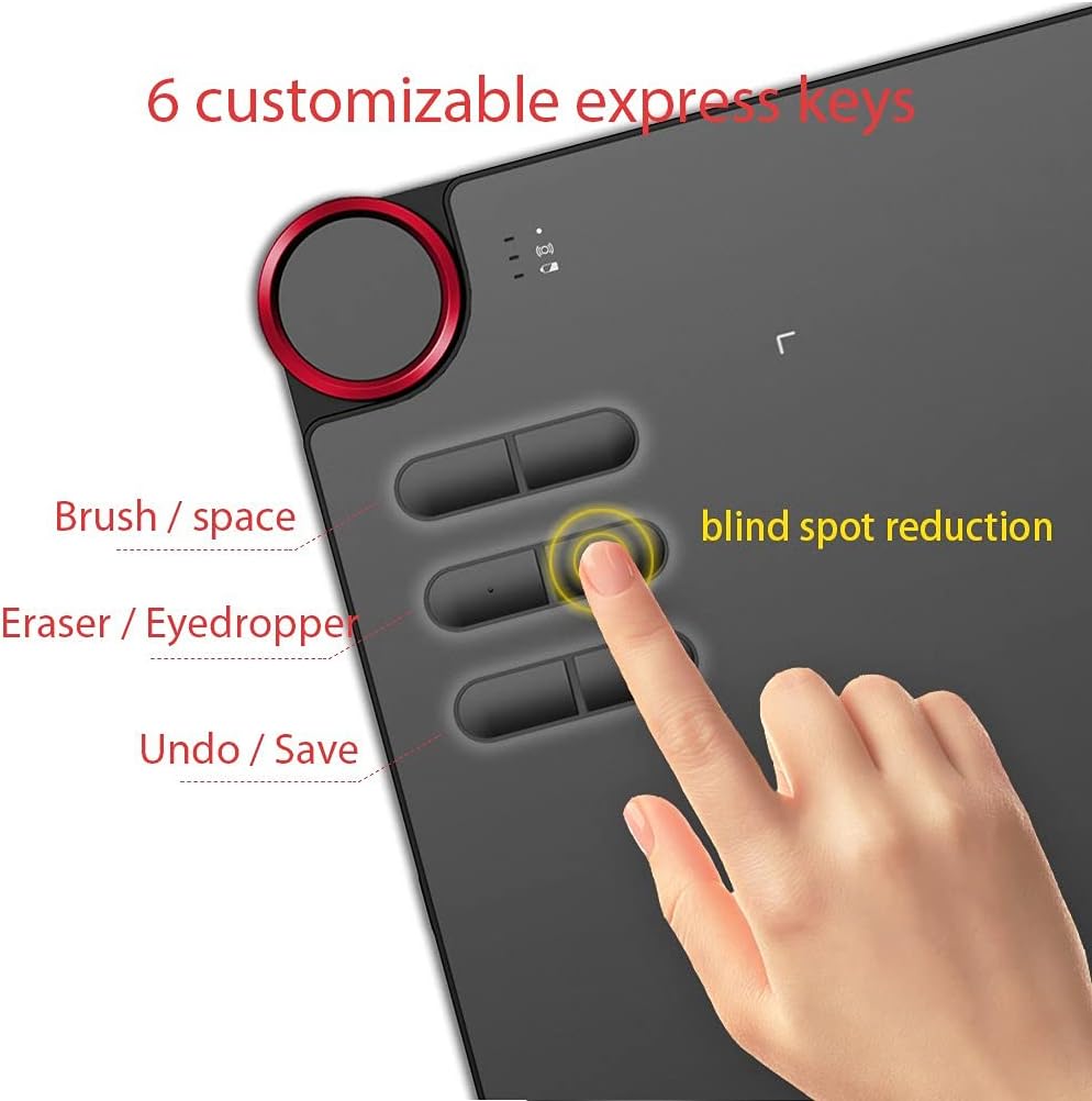 • Червен пръстен в ъгъла и шест напълно персонализируеми преки пътища. Графичният таблет е съвместим както с десничари, така и с левичари.