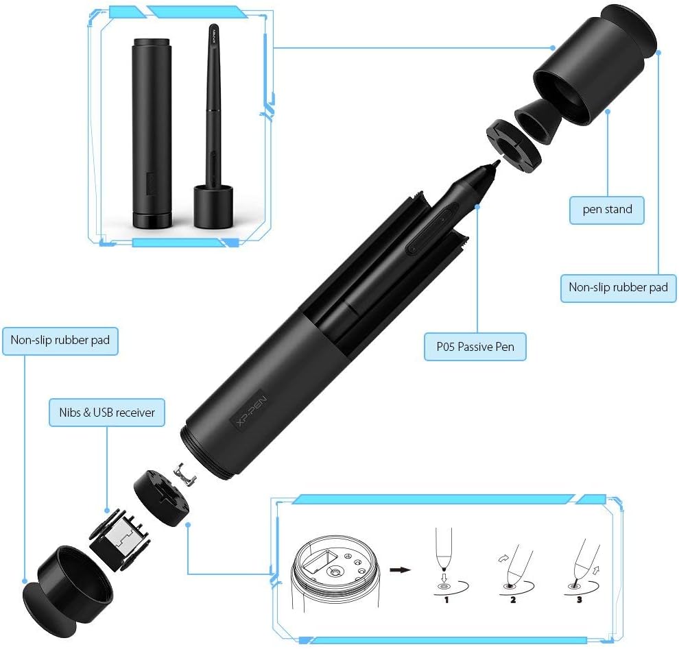 • Писалката Deco 03 е най-новият модел P05 с по-ергономичен дизайн, който може да издържи на 8192 нива на натиск и не изисква батерия.