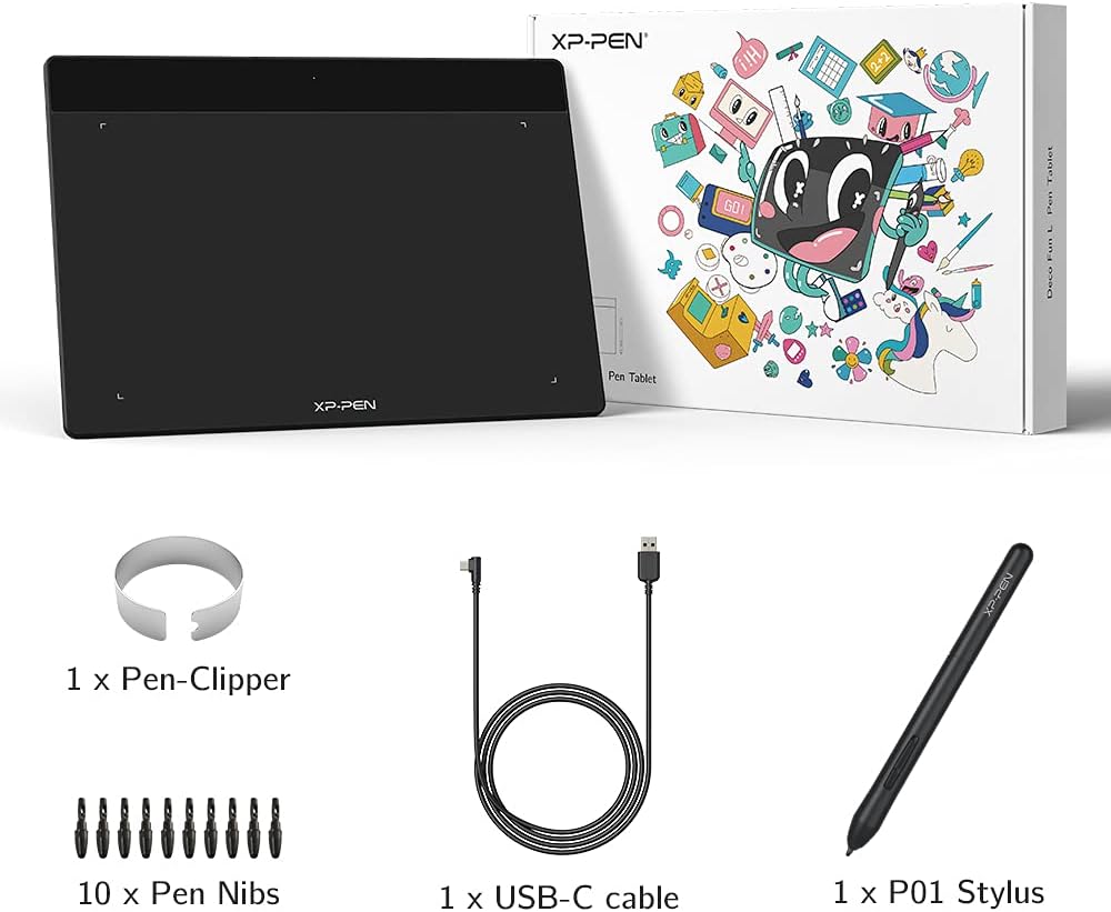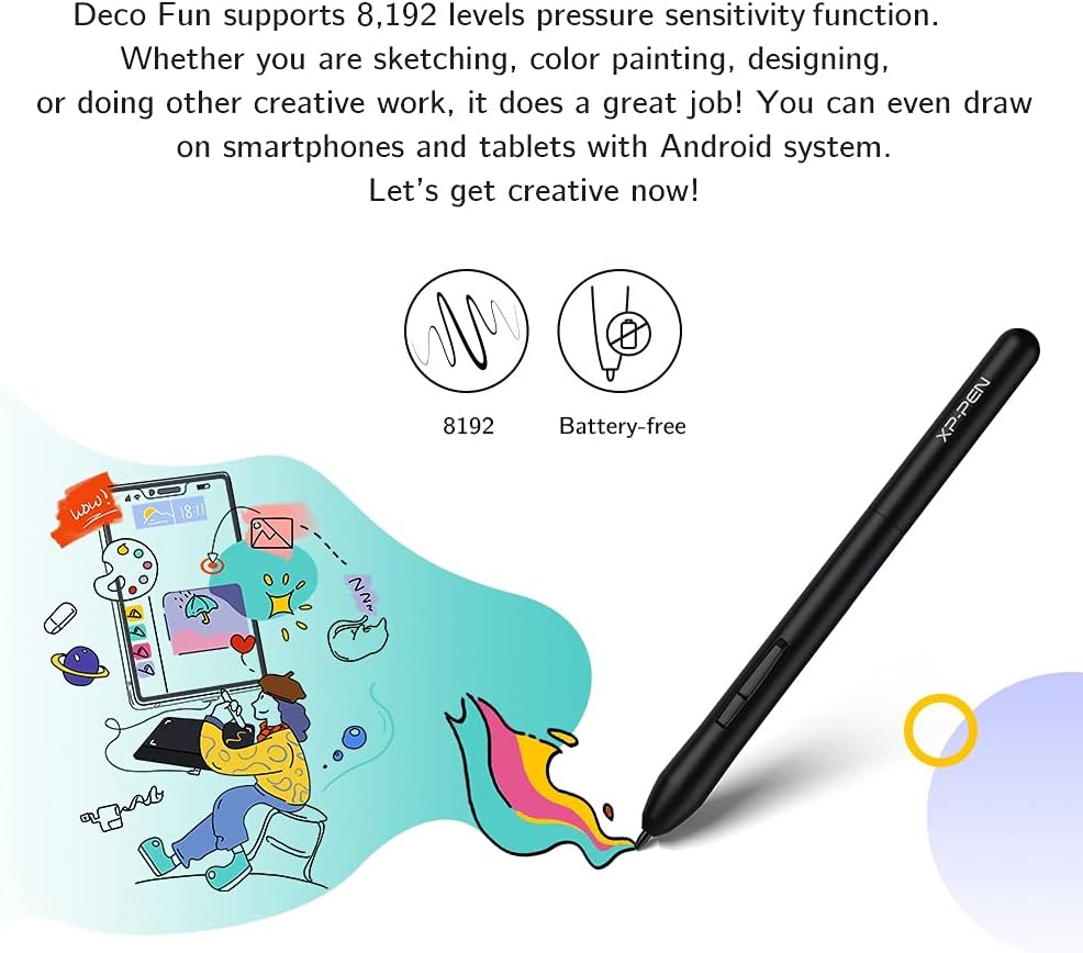 XP-PEN Deco Fun XS Таблет за рисуване, размер 10,2 x 7,6 см, идеален за електронни подписи и дистанционно обучение - класическо черно
