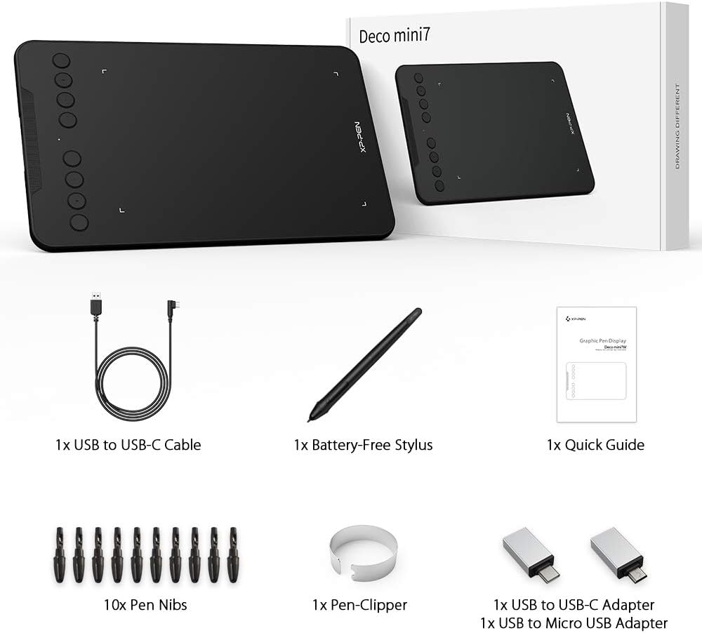 • Приложение: XP-PEN Deco mini 7W е съвместим с Windows 10/8/7, Mac OS X 10.10 (и по-нови версии), Android 6.0 (и по-нови версии) и Chrome OS. Този графичен таблет работи с повечето популярни програми за рисуване, като Photoshop, SAI, Painter, Illustrator, Clip Studio, GIMP, Medibang, Krita, Fire Alpaca, Blender 3D и други.