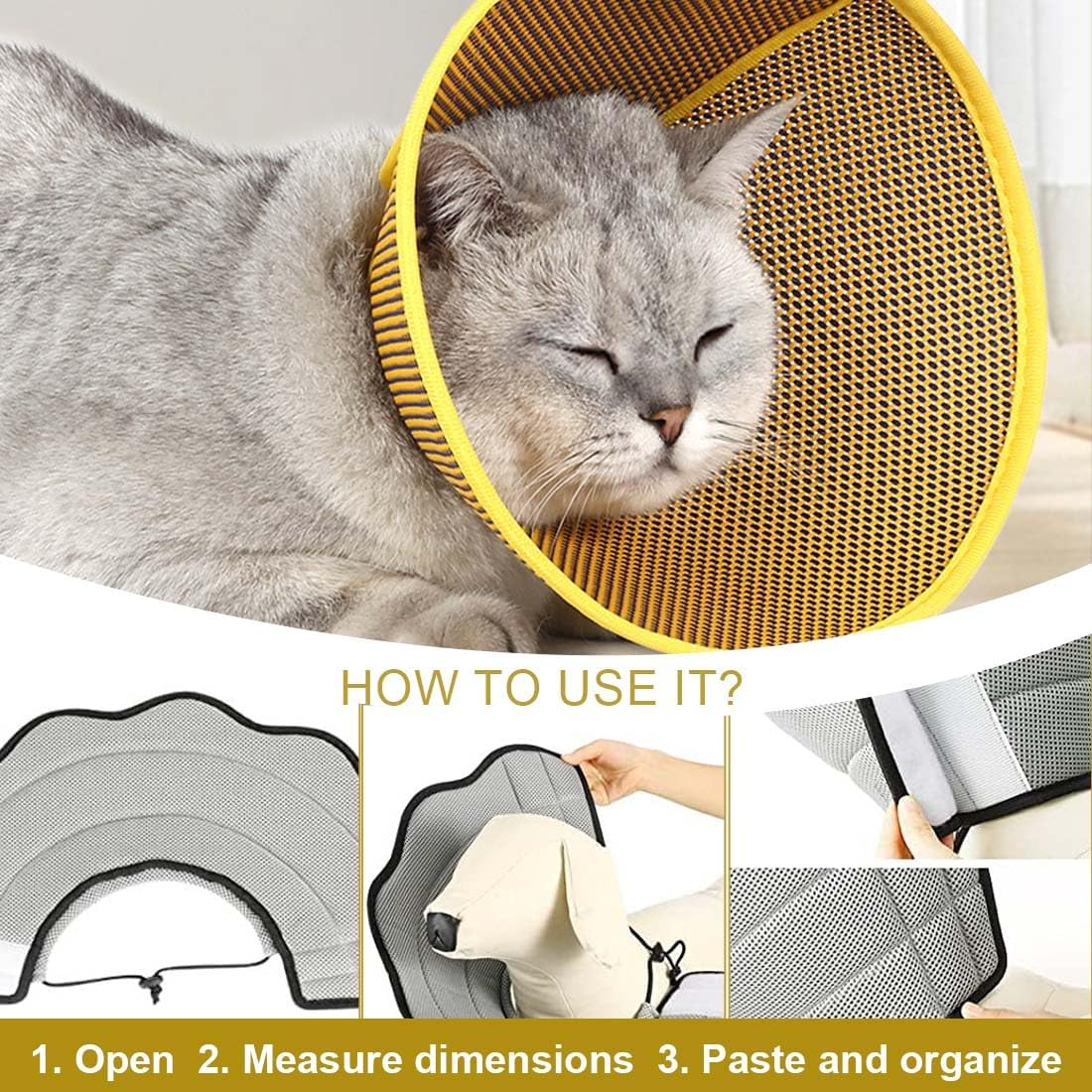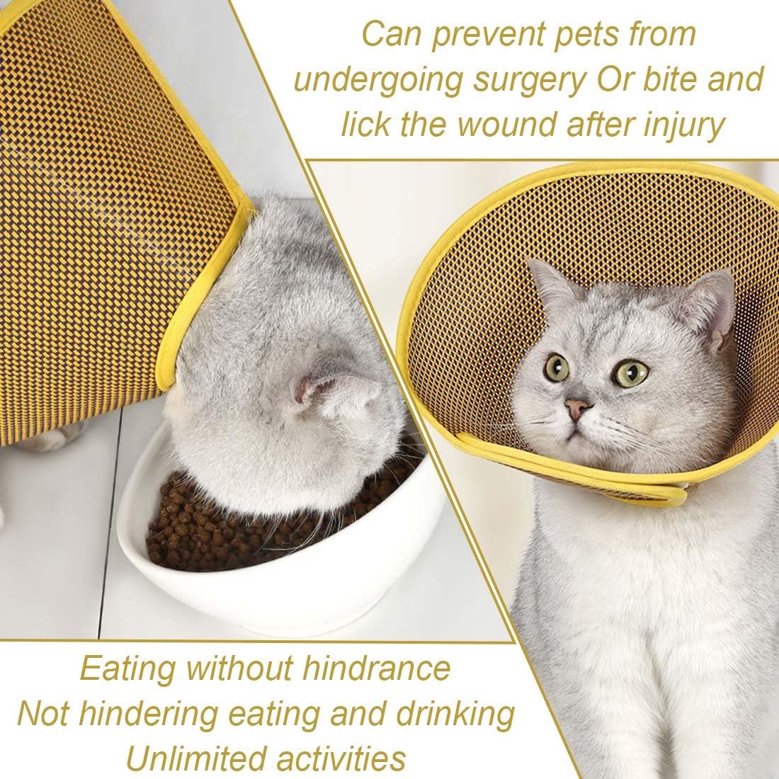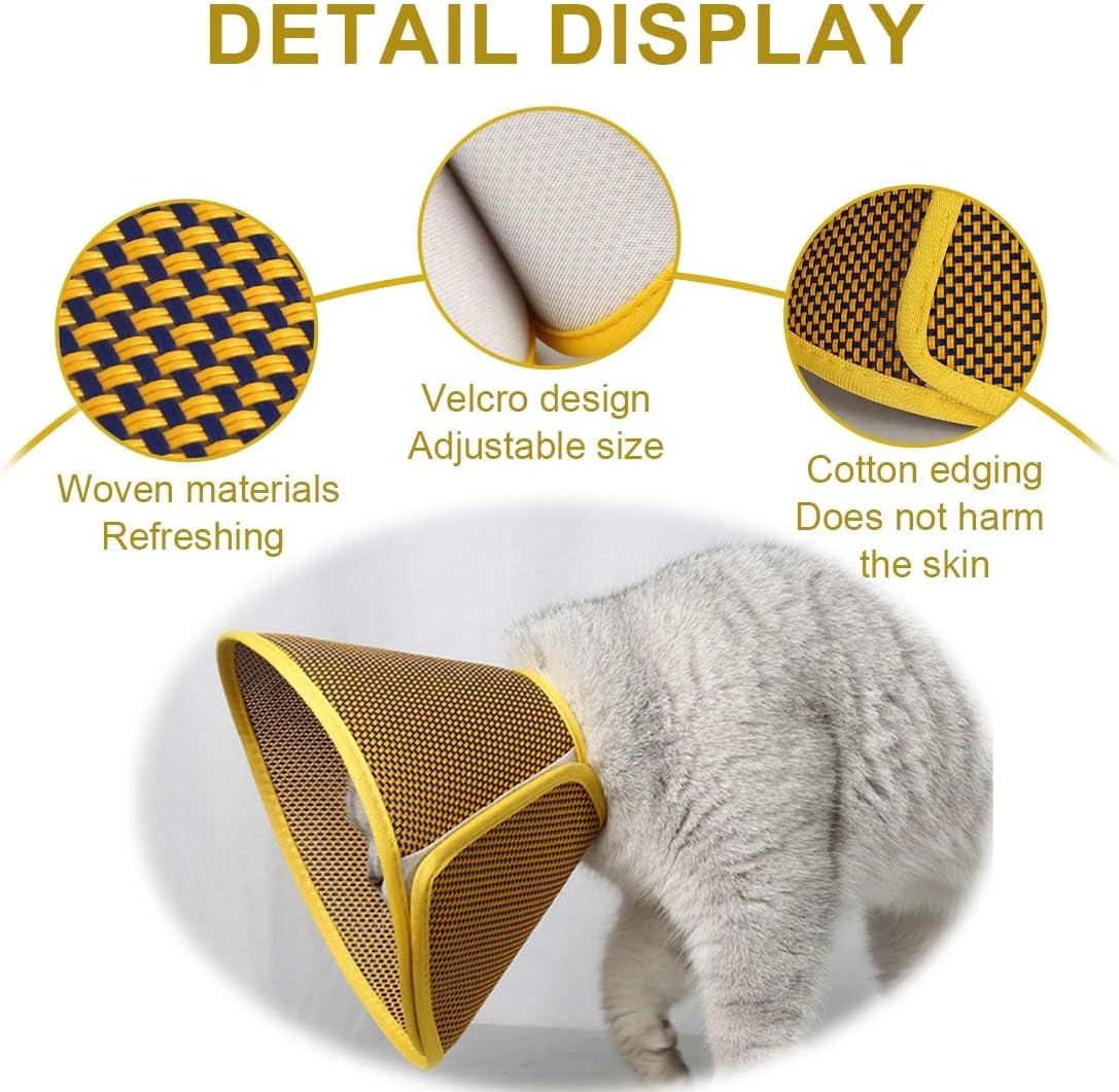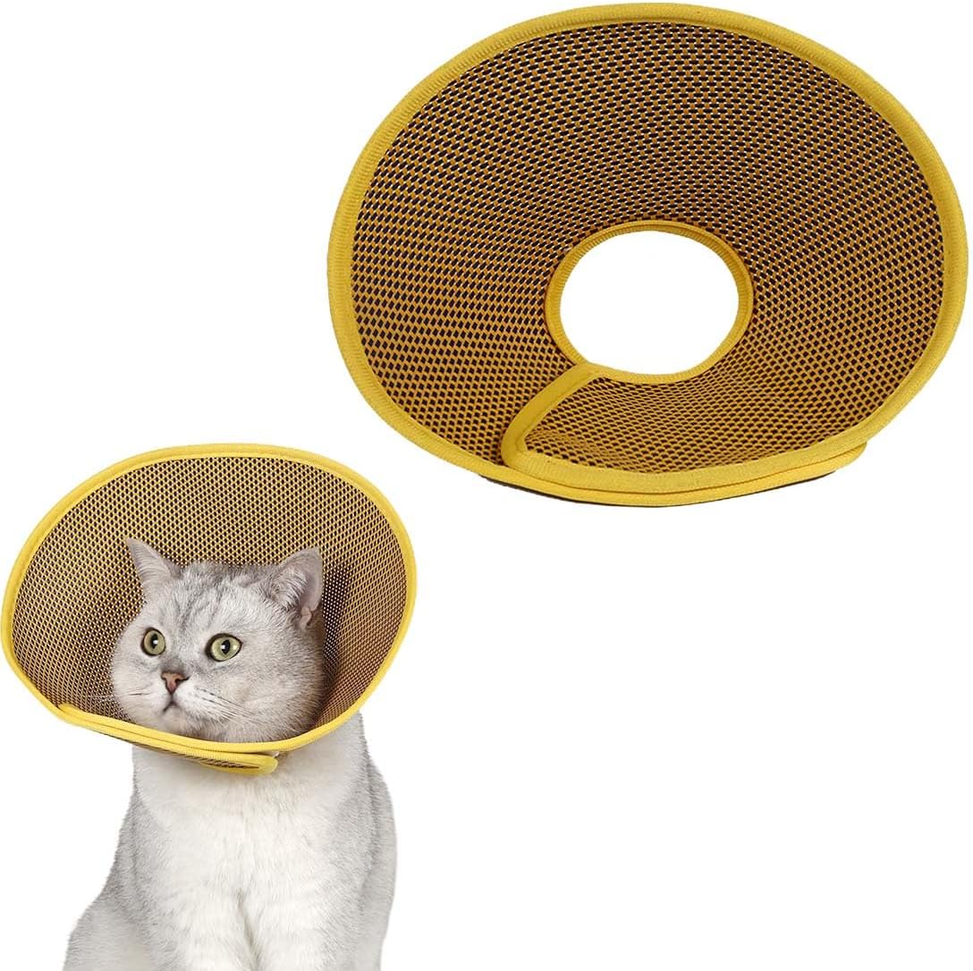 XPEX Жълт котешки конус, регулируем конус за развлекателни домашни любимци, лек пластмасов елизабетански нашийник за котки, мини кучета и зайци, размер M