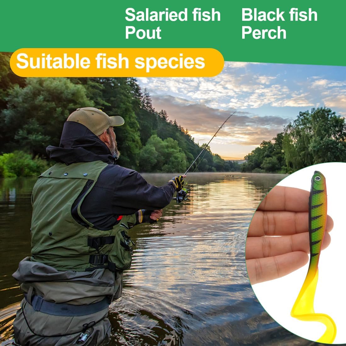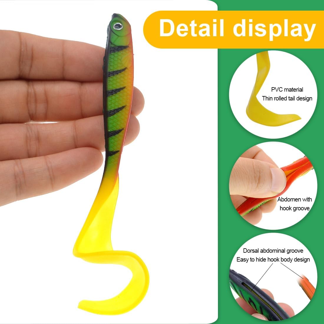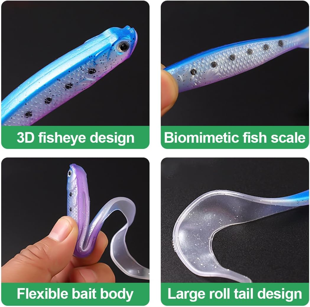 • Риболов с гумена стръв: комплектът за риболов на хищни риби бързо ще се превърне във вашата нова любима стръв. Идеални за употреба като примамки за риболов на шад, стръв за хищни рибари, стръв за щуки, шад, ексцентрична кука, тези меки риболовни примамки са идеални за начинаещи рибари и любители на риболова.