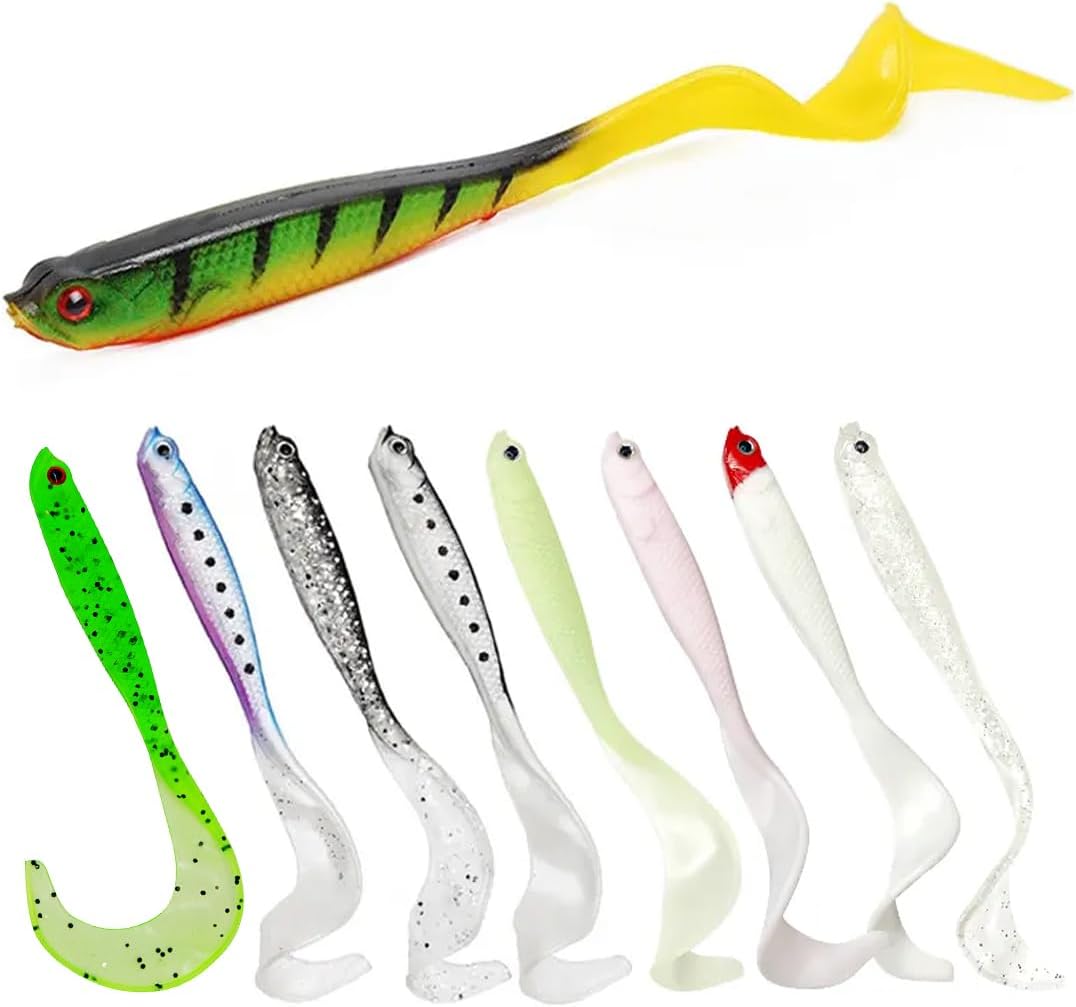XPEX Пакет от 8 гумени примамки за щука и бяла риба с туистър опашка 12 см 6G, с джобове за кукички за офсетови кукички и стандартни джиг глави, гумена рибка за щука, стръв за бяла риба, стръв за щука, гумена рибка за бяла риба