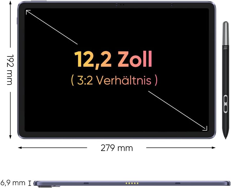 XPpen 12.2-инчов самостоятелен графичен таблет с дисплей и смарт писалка X3Pro 16384, Android 8GB + 256GB WiFi с батерия 8000mAh, магическа подложка за рисуване, 2K резолюция, цифров таблет за рисуване с операционна система Android 14